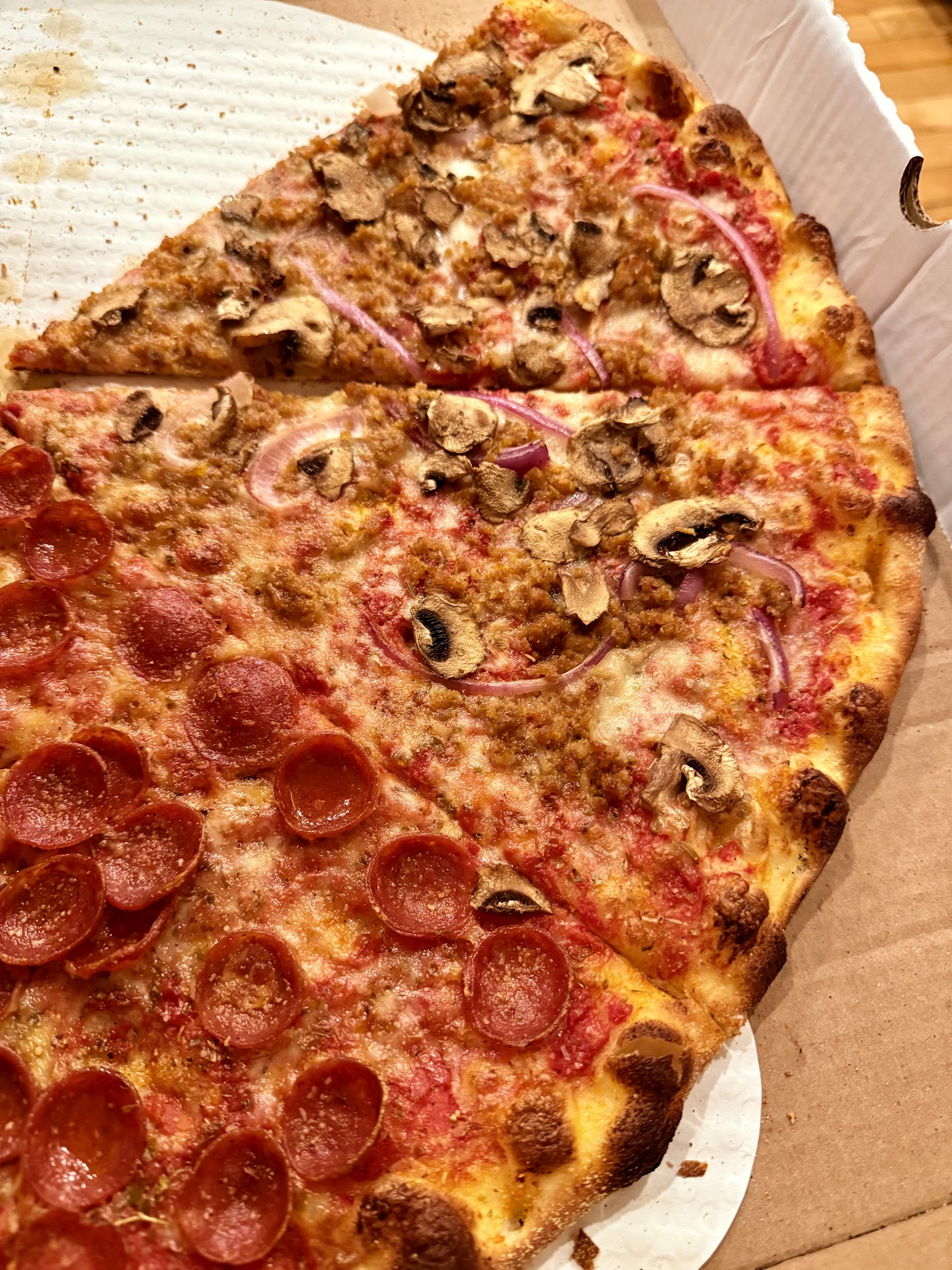 Maybe it was the fact it was a slow Sunday? I definitely think the whole pizzas in the customer photos look better, but some of the slices are definitely questionable.