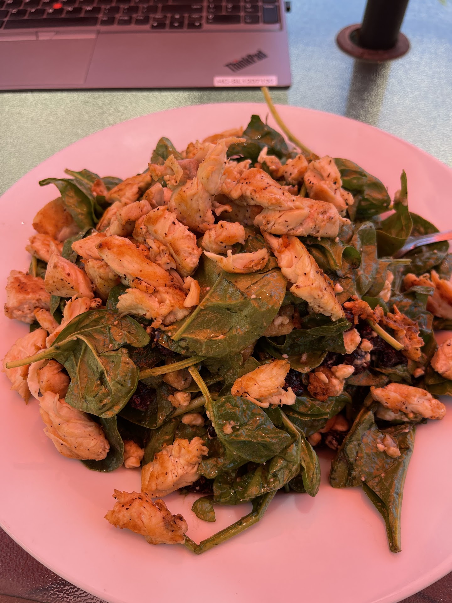 We watched the kitchen staff stack plates on top of each other in the service window with food to go out.
