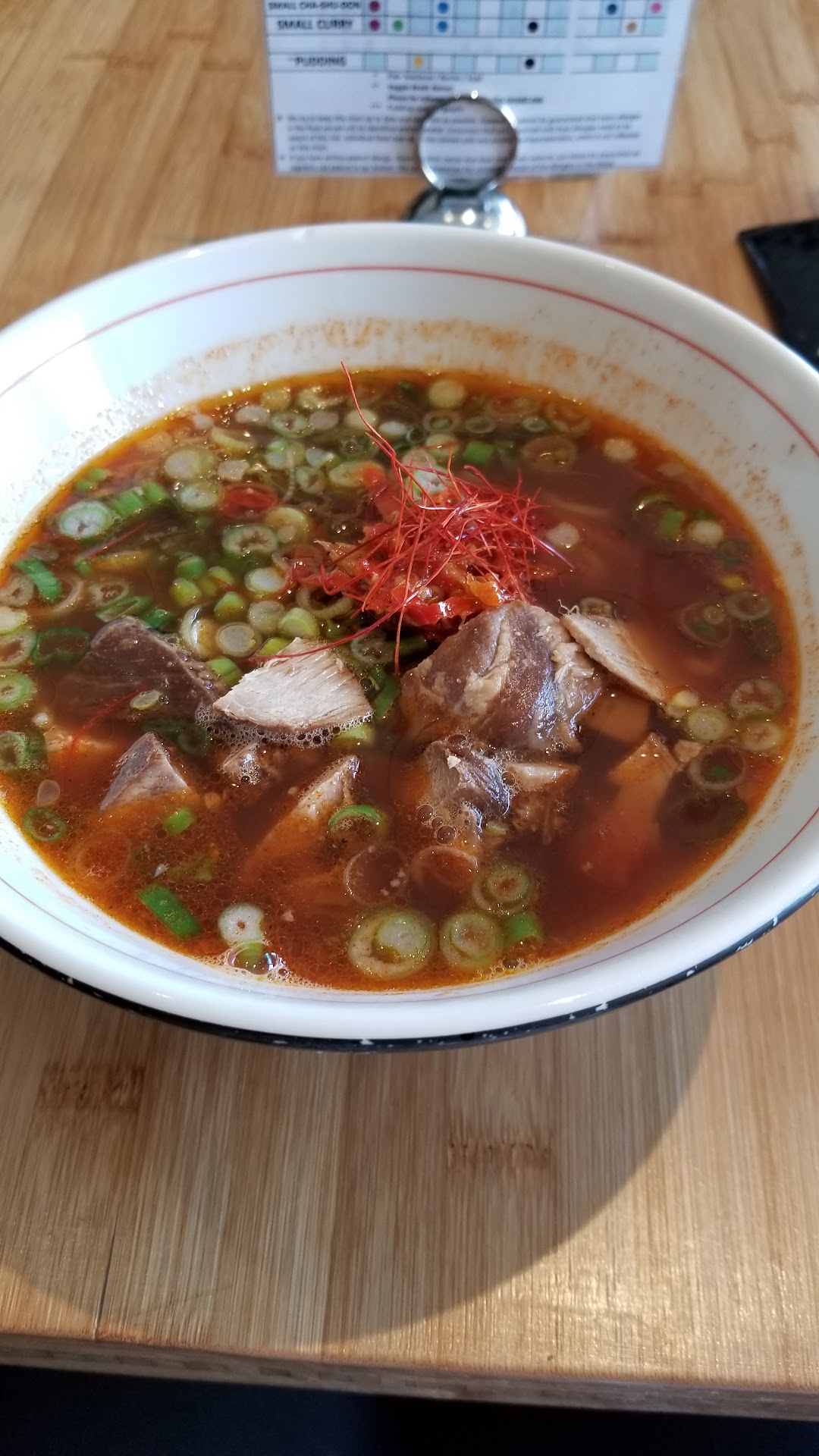 Ah, what a gem! I wish I had discovered this place sooner. So good. So, so good. Just seeing the pictures makes me wish I was eating it right now. Nestled in kind of a residential area, it may be easy to miss. Street parking only as I'm aware, but easy to find. Unassuming and unpretentious, you are immediately greeted with enthusiasm and warmth. Getting here early is key as it doesn't have a ton of seating and fills up quickly. This is partly due to many solo diners, like myself (sorry 🙁). Service, excellent! The lady is so sweet and your food is ready very quickly. The chef brought my bowl over the first time, he was so nice and seemed proud of what he was serving-as he rightly should be! A big beautiful bowl of pillowy noodles and incredibly tender pork immersed in a flavorful broth 🤤. The first time I got [I will check the menu and update] and the side of curry, my second visit the miso broth with pork. Everything was delicious! I was way too full the first time which is the only reason I didn't get the curry again. Their ability to balance heat with the delicate components of the broth is impressive. You will hear a lot of slurping. It's a sign of respect to the chef and although I knew that, I was initially surprised because, in retrospect, I guess I've never been somewhere so authentic. From the texture of the noodles, to the fresh flavors and vegetables in the broth, it will ruin instant noodles forever. Don't say I...