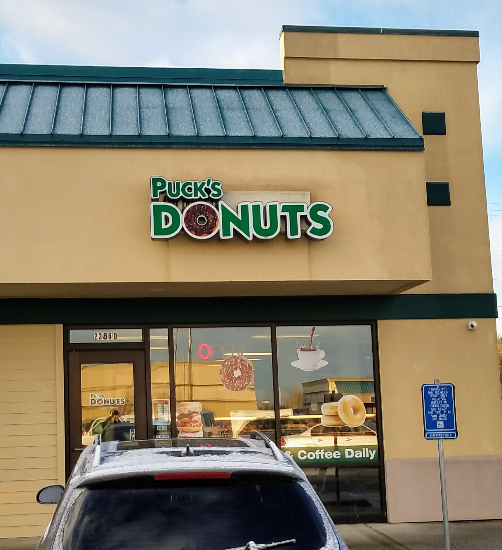 Read moreI Finally got to a donut store here in Oregon..Lived here for a year and haven't had a donut. LOL Started reading reviews and went to Pucks...it is very near my house. They did not disappoint!! Bought 3 donuts and got a free one with my order. It was light and fluffy and FABULOUS!!! Now I know why they have great reviews. I will be returning and it won't take a...
