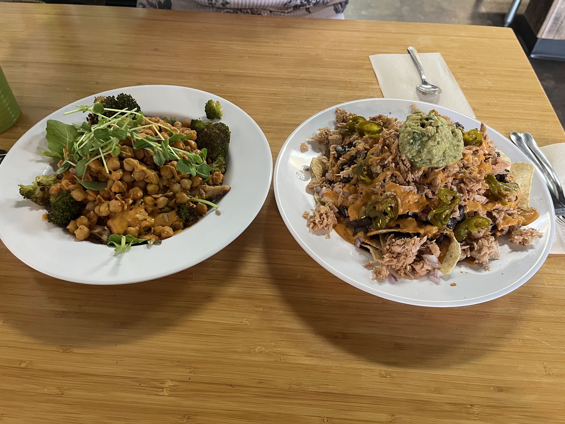 We spent $71 dollars and got: pulled popper panini (8.3/10) with gf bread replacement, rooted nachos as a rice bowl(9.5/10), apple nachos (7/10), matcha mango smoothie (8.5/10), berry cherry smoothie (9/10) and a cookie which was probably a good 8.6/10.