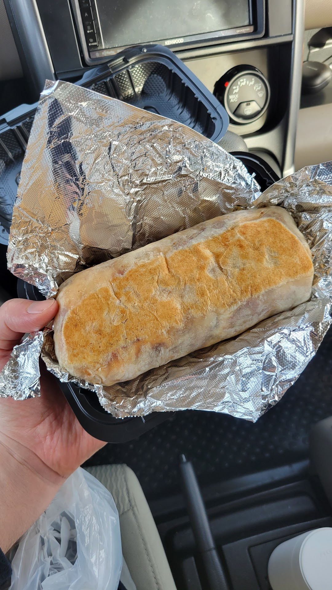 Also, it was both wrapped and inside a container, so it came out piping hot and kept its heat for a full hour as I ate it while driving.