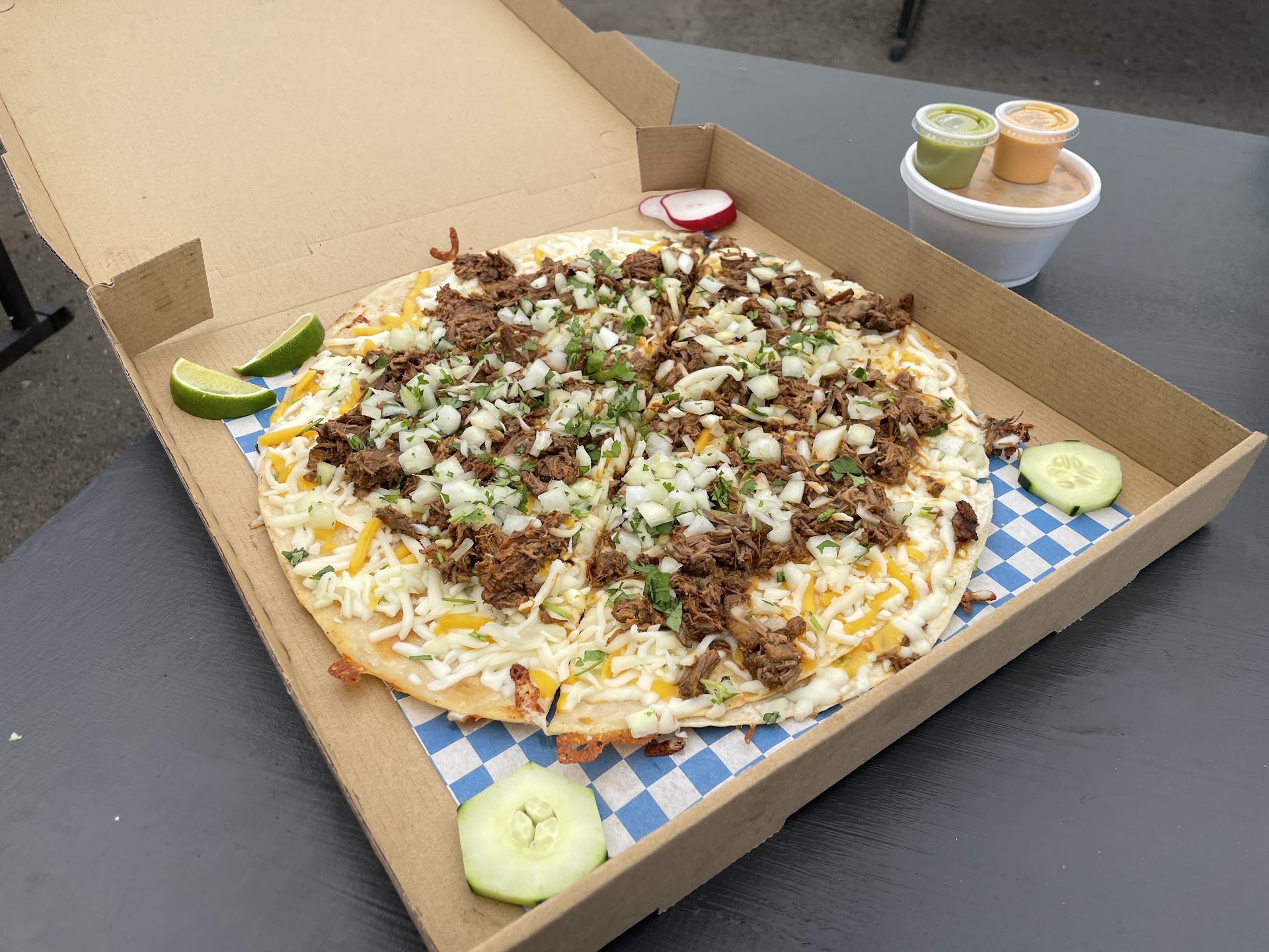 Today I tried the Birria Pizza! And it was a beast of a meal, and I enjoyed every bite! Melty cheese on 2 crispy tortillas with juicy birria and fresh cilantro and onions on top - Somebody pinch me! Served with a side oh warm consome dip.