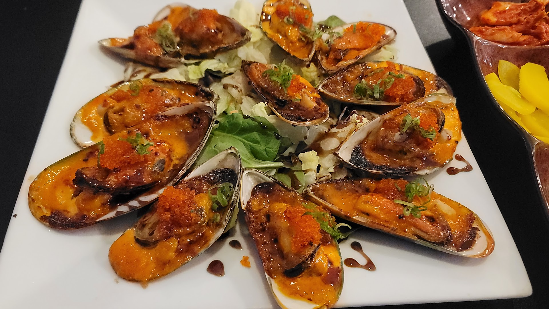 The food is amazing with great service! The restaurant is a bit outdated. Our table was wobbly, but we didn't care; focus was on the AMAZING food! Highly recommend the mussels and kimchi roll. I wish they were located in the Portland area. LOVE THE FOOD SOOO MUCH! Date night ... if you're not worried about the ambiance, this is a PERFECT place to enjoy each other's company. The way to a woman's heart is her stomach! I'll return every time I pass through Medford. YUMMY! Forgot to take photo of the kimchi roll because I couldn't wait to eat it. Short ribs were...