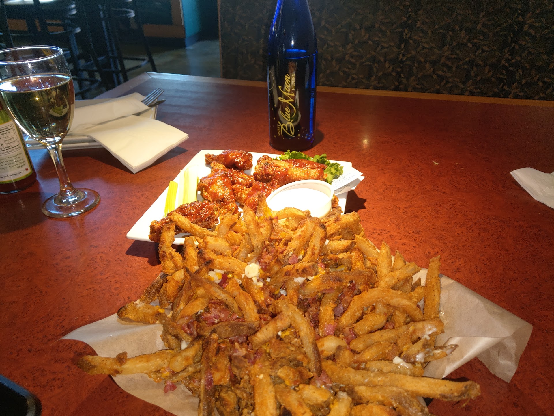 Not sure if it was a bad day or they just didn't like us. đŸ™ƒđŸ€”đŸ€·.. Anywho, we get there the guy up front throws the menus on the table of where we were going to sit.. Waitress was friendly. Less than 9 people were there so it wasn't busy. Presentation was awesome. Not a long wait time. Price to portion was a bit expensive. I'm not sure if it was the regular sauce that made it so bland, but there was absolutely no flavor between a sausage pepperoni/chicken bacon ranch pizza. With shredded mozzarella cheese. I've never had to add salt & pepper to a pizza.. I had to here though. Wings were okay BBQ.. 6 out of 10. The loaded fries were a total let down, little to no cheese, was offered bacon as topping while menu said shredded pork. Maybe it's a healthy type pizza place.. I'm not sure. The smell of the place was amazing though.