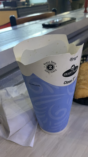 Read moreI hate to give this place a bad review but the quality has gone down. They have these new crazy cups that have no lids and you have to fold them. They are so flimsy. No straws. You have to drink out of it like a 10 year old drinking your soda out of a milk carton. Dumbest thing ever. The soda prep station was destroyed with soda because every customer had trouble trying to fold their cups. I’m speechless. This is not a Karen rant. I am speechless at not only the cup design but that management would use these. Seriously enough of a reason to not go. Every customer was complaining when I was there. Also, served one of us food and the rest of us waited for 20 min. Literally 4 people in the entire restaurant. Other person in our party finished their meal and we still didn’t have any food. Ridiculous.