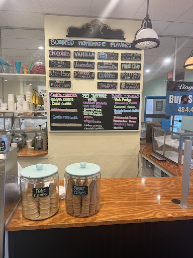 First time here and was pleased to hear the ice cream was homemade. I tasted the lavender and couldn’t really tell it was flavored with much; I was getting more vanilla. The texture of the ice cream and sorbet was scrumptious and creamy, super impressed with that texture! We got one sugar cone with coffee oreo sand one cup of chocolate. Our total came to $10.25. Prices are reasonable compared to Rita’s and other ice cream places, although I do think the flavors are lacking an umph or “wow” factor; I guess I expected a little more. My coffee oreo had an initial good flavor but then started to taste like vanilla…just not as much coffee as I would have liked. The service was great for a small business staffed with high school professionals. The chairs were very cute but there is not much room inside and can become loud. It did become quite crowed with two groups of families inside. Not sure if I will be...