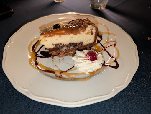 The menu listed the New York Cheese Cake with whipped cream and fresh berries; we were served cheese cake with caramel. The ambiance of the restaurant was warm, but the vibe was cold. We felt like we were in a diner with the lights dimmed.