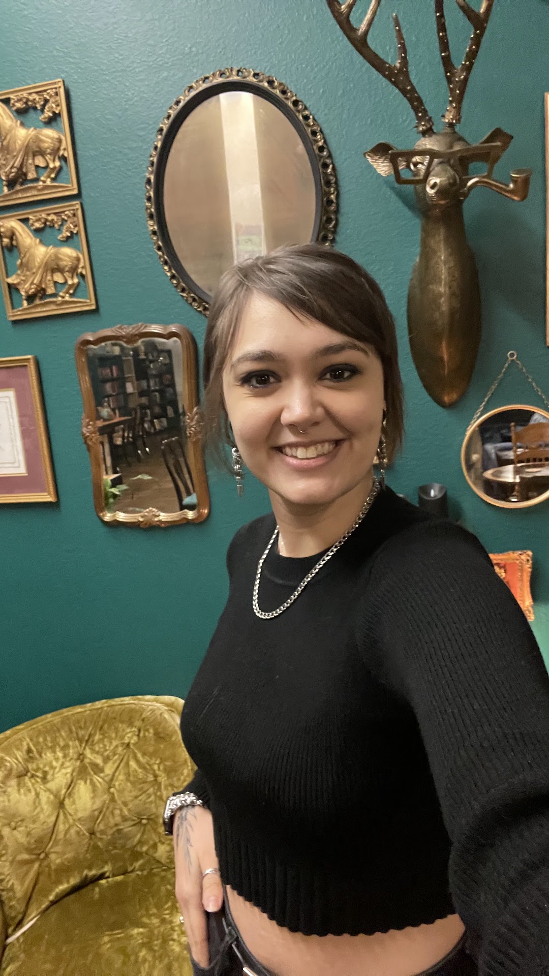 Stop! Whatever you are doing, you need to stop and read this review OR better yet, stop reading and just go to third place coffee and books. Oh my gosh, I canāt even explain how incredible this place was! From the moment we walked in I knew it was special. From the green walls to the almost antique looking furniture, the vibes were just perfect. I felt like I had just walked into a shop run by the great Gatsby or a music video by Taylor Swift. As I looked over the books I was mesmerized by their selection (even spending about 10 minutes reading āmagnificent catsā) then after a visit to the incredibly cool and incredibly purple bathroom, I went up to the counter to order. The person who took my order could be described as very patient with just a hint of mischief, allowing me all the time I needed to order (as a very indecisive person, this was a big W) and offering advise concerning health benefits and her own recommendations. Once she saw that I couldnāt decide which cookie I wanted she said āIāll just throw in the other one and you can tell me how it is.ā This was super sweet and kind but I wouldnāt expect them to do that for everyone because I am an exceptionally attractive person so I had an advantage (jk, lol.) As I was here with my semi-professional singing group I decided it would it would behoove us to ask for permission before we randomly broke out into song in her establishment. Her response was āum, absolutely, I was actually considering asking if yāall were gonna sing for usā which is just the best thing to hear as a group of singers (not that we often sing at unwilling audiences but theyāre not always eager either⦠š ) After we sang for them and I received my food and drink, we left and I tried my golden dragon latte and cookies and OH MY GOODNESS that was actually the best coffee shop stuff Iāve ever tasted. Not only were all of their drink options incredibly creative, unique, and well named, but they tasted spectacular. If you are ever within a 100 mile radius of this place, you need to hit it up. Iām absolutely livid that I live in Ohio because itās going to suck to drive 12 hours to get coffee but you gotta do what...