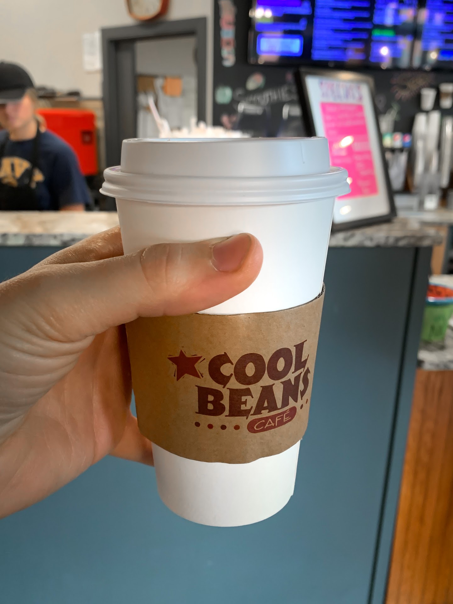 Went with my partner to Cool Beans on a quick lunch pit stop. Was looking forward to visiting after a recommendation from a friend, and hearing about their iced coffee and soup flights. We ordered two of the drink specials, the Hermit, a Thai Iced Tea Blended drink, and the High Priestess, a Dark Chocolate Peanut Butter Latte. We ordered both with oat milk, which was confirmed by the cashier. I do prefer a sweet flavored drink, but both tasted primarily of milk and syrup, and possibly dairy milk. We ate the soup flight for lunch, ours had the chili, potato leek, pasta fagioli, and tomato soup. We paired it with the three cheese panini with added bacon. We loved the tomato of the four soups, and found the other soups and sandwich average. It was a busy day, and there were about 30 people in the Cafe. The food took a while to come out, and it was difficult to hear names being called clearly. A last concern, despite the high ceilings and spread out tables, and people in and out the doors air quality levels were very high, the second time I've seen a capped score of 1999ppm. Good indoor air quality should be below 1000ppm. Installing quality air filtration can help improve this and keep customers safe by decreasing risk to airborne illness. The flights are really cool concepts, and if these concerns were addressed...