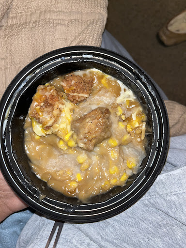 I usually go here quite often because of the good deals they have but I went in today though the drive through ordered a 5 dollars fill up with two extra crispy piece of chicken coke no ice. Easy enough total came out to 5.06 I pull around and she tells me 8.06 and I'm just greatly confused she corrected herself apologized and I understood I use to work in fast food hands me my food and drink and I park to eat. Open the chicken. Original recipe so i went inside said this was the wrong order they fixed it but didn't have any thighs in extra crispy asked if a wing or breast we're ok. I like dark meat so I said I guess wings which have no meat on them. I get back to my car to eat again go take a sip of soda and my head instantly hurts. Ice. My drink was full of ice. So I took a deep breath and just tried to eat my food. Ice. Cold. Mashed potatoes. The gravy was even solidified in chunks just look disgusting. I was so disappointed today and o usually love this place it was very upsetting to have so many mistakes in one day. (Same...
