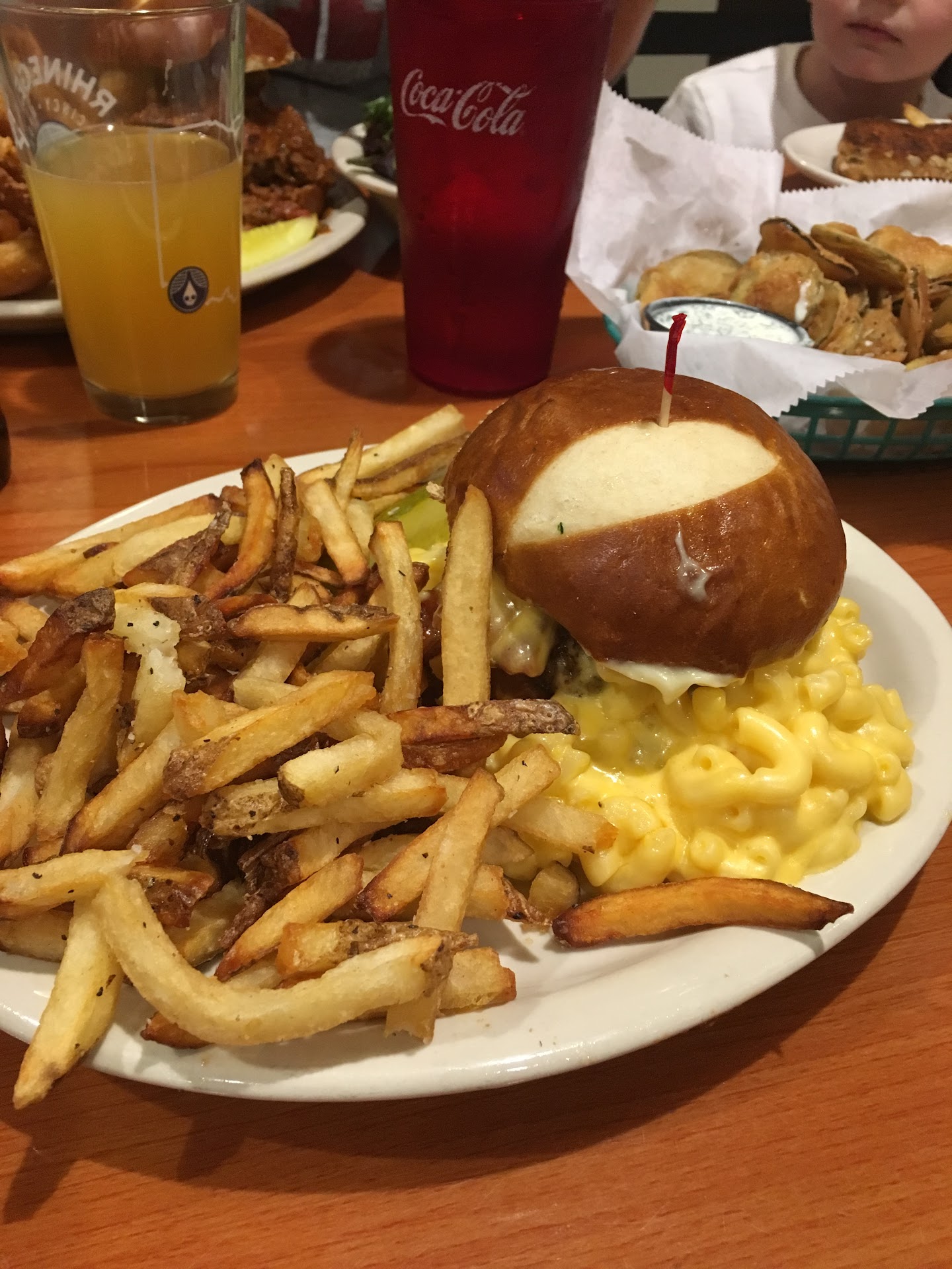 Entree: C+ Unfortunately, my experience with the burgers here was average at best. The Safecracker burger I had was under-cooked, dense and a bit dry. An odd combination of miscues but there you have it. The bun, fries and burger toppings (bacon and mac n' cheese) were quite good, which made the sub-par burger even more frustrating. The amount of attention paid towards some of the food on the entree was refreshing after the extremely disappointing appetizer.