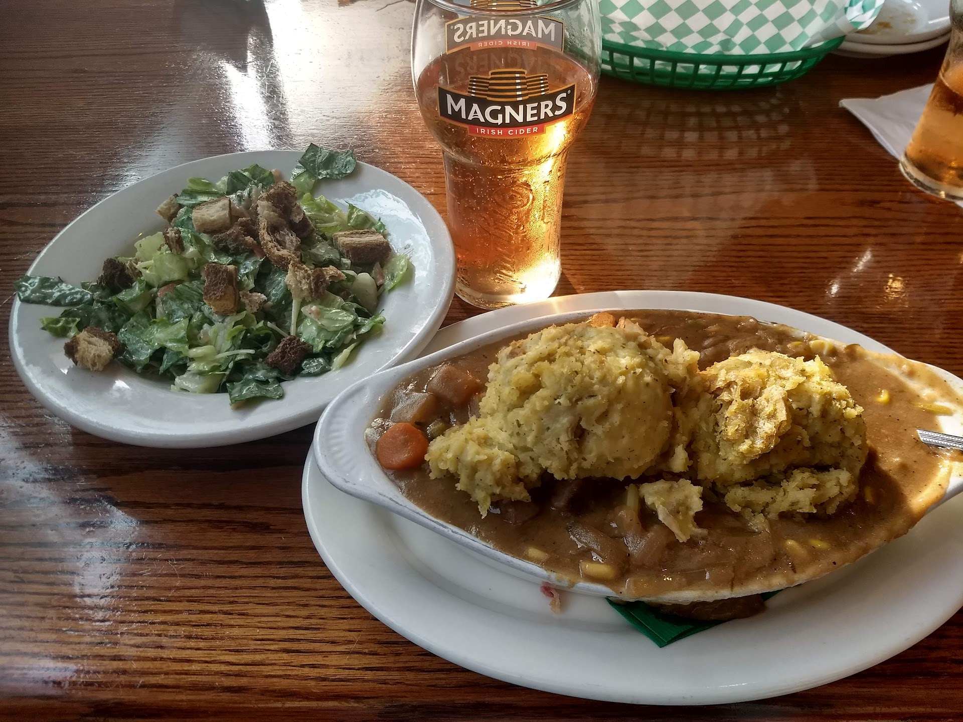 Nice Atmosphere. Good Service. Nice outside patio setup. Not sure if because of menu slowly coming back or that is actually how they make Cottage/Shepard's Pie, but was very dissatisfied with it. Nothing like actual Cottage Pie. All they did was take their Irish Stew and Slap some scoops of potatoes on top. Cottage/Shepard's Pie is a Casserole and to prepared as such. The Irish Stew was all large cut ingredients and good in it's own right but terrible to use as base for Shepard's Pie. Almost debated on 3 stars just on that poor representation of cultural dish. But hoping that it's contributed to the strains on menus due to virus limitations. The Corn Beef and Cabbage was also lacking. But the Ruben Egg Rolls were very good. Hope to maybe give them a second chance and try in a few months when things running properly again.