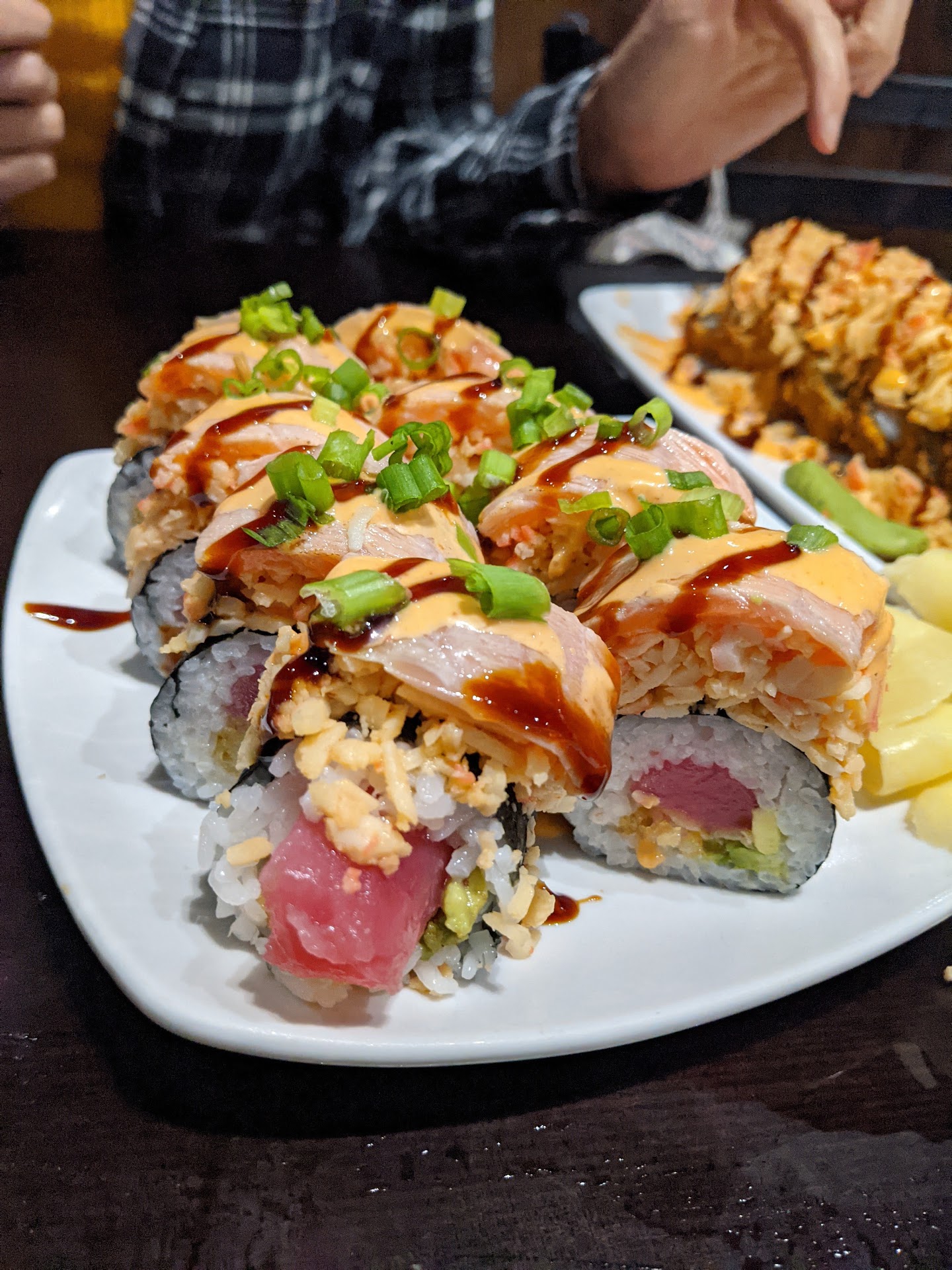 This was a fun concept restaurant. Can't decide on pub food or sushi? Here ya go. This was delicious. I got the burger and sushi combo. I upgraded to the Mac N Cheese burger and a shrimp tempura roll. My wife had the same combos but opted for the fig jam burger and Philly roll - also delicious. Both also came with twisty fries. The menu all looked good. The wait staff kept my drink full and we didn't have to wait long on food or service. Price point was a bit high but maybe I'm too old at 40 for these inflation prices. I'll have to come back for sushi specials on Wednesdays to try the more fancy rolls. Although they looked phenomenal, I couldn't justify paying up to $18 for the specialty rolls. So I opted for the combos and tried it all. The atmosphere had cute decor. The country music mixed with sports playing on TVs at the bar, mixed with an industrial metal and concrete vibe kinda made the theme hard to place. Hence the Twiisted name I guess. But it didn't affect the meal or food. Again maybe I'm too old now. However the artistic fish pieces were cool and cute. We'll definitely try this again when we're in the Medina area. The only other comment I have (and again, I guess I'm old) but all the wait staff were attentive and did their jobs wonderfully...but none of them had customer service skills or personality. The hostess asked if there were 2 of us, then proceeded to look for open tables and stared at us awkwardly until we caught her eye to follow her. No "right this way." I also saw her cleaning a table and use the same rag to wipe something off of her bare leg and then used it again on the table... Our server was nice and did everything a server should do. But there was no interaction other than serving us, taking our orders, refilling glasses and bringing the bill. The table of young girls he was attending had a different experience. I'm not knocking any points off here. I say go check this place out soon. But don't expect to be wowed by the staff or ambiance. It's...