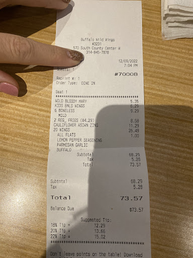 Read moreWhat a disappointing outing. After a day of shopping at the mall, my wife and I decided to have dinner out, a rare occurrence for us. It had been a while since we visited BWW, so the idea sounded appealing. We noticed the restaurant was warmer than anticipated when we arrived, but we chose to bear with it. While waiting for a hostess, it seemed like nobody even acknowledged our presence. Servers passed by without a simple greeting. My wife voiced her concerns that this might not be a good choice. I suggested we give them a chance, considering they might be short-staffed.