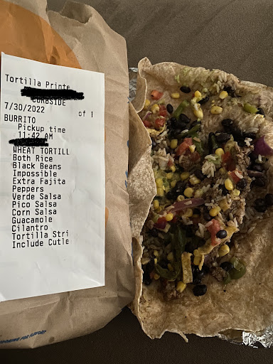 Read moreAre generally go to chipotle for the nearest one was 15 minutes away and this is on the way home so I figured I’d try it. For starters, my wife is gluten-free and want to know from the get-go that she had a dietary restriction and they were super cool change gloves and seemed like they understood and immediately after changing gloves proceeded to cross contaminate by handling flour tortillas and her food with the same gloves. Whatever, maybe some people don’t know and I’ll do my best to try not to be difficult because I know that. But she changed her gloves and immediately preceded to contaminate them. My wife’s meal had to go to my nephew instead. She just decided it would be easier to go hungry at the moment. On top of that as we eat in the restaurant, unpacking everything corn tortillas that she had gotten were already falling apart before she had started assembling anything for our nephew. Picture for reference. The food was lackluster, The customer service was subpar, and we most definitely will not be back.