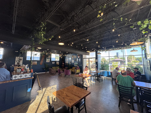 The vibe inside is just as great as the food. The framed surf art, dark blue walls, and funky furniture give it so much character. Thereâs also a nice patio out front and convenient parking behind the cafĂ©.