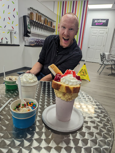 Fairly new ice cream place located on Wickham road. The shakes were amazing, especially the strawberry shortcake Extreme Shake which came with a piece of pound cake drizzled in strawberry sauce, a pastry filled with cream. Not to mention the shake was full of flavors with chunks of strawberries and pound cake mixed into the shake which gave it that thickness and yet smooth taste throughout. The plain vanilla milkshake did the same thing, felt thick but went down smooth with lots of vanilla flavor. They had a lot of flavor varieties, definitely was in a mood based on the Carmel and elephant ear ice cream that I tried. However the one that caught my eye was called "Garbage Can" which is described as vanilla ice cream mixed with chunks from 7 brand name candy bars. Bringing all of those flavors together would be heaven for me. The customer service was incredible and they just want to help out and allow you to add whatever...