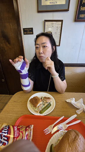 For those who are complaining how this place handles COVID precautions, maybe stay home and cook your own food if you're so concerned. Also, for those who are complaining about the price, $10 for a large sandwich that fills up my coworkers and I up, it's...