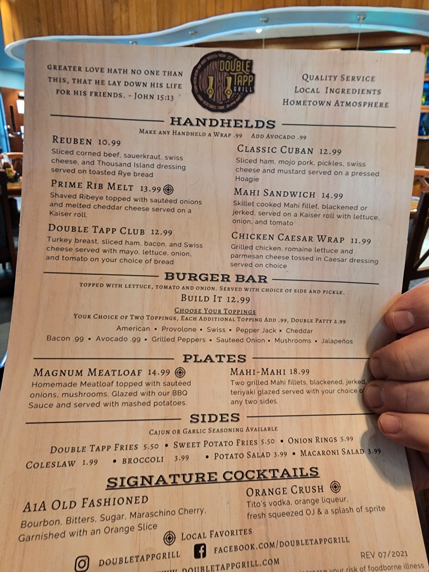 If you're looking for great food, amazing service, and a staff that treats you like family, Double Tapp Grill is the place to go. We’re already planning our next visit! Highly...