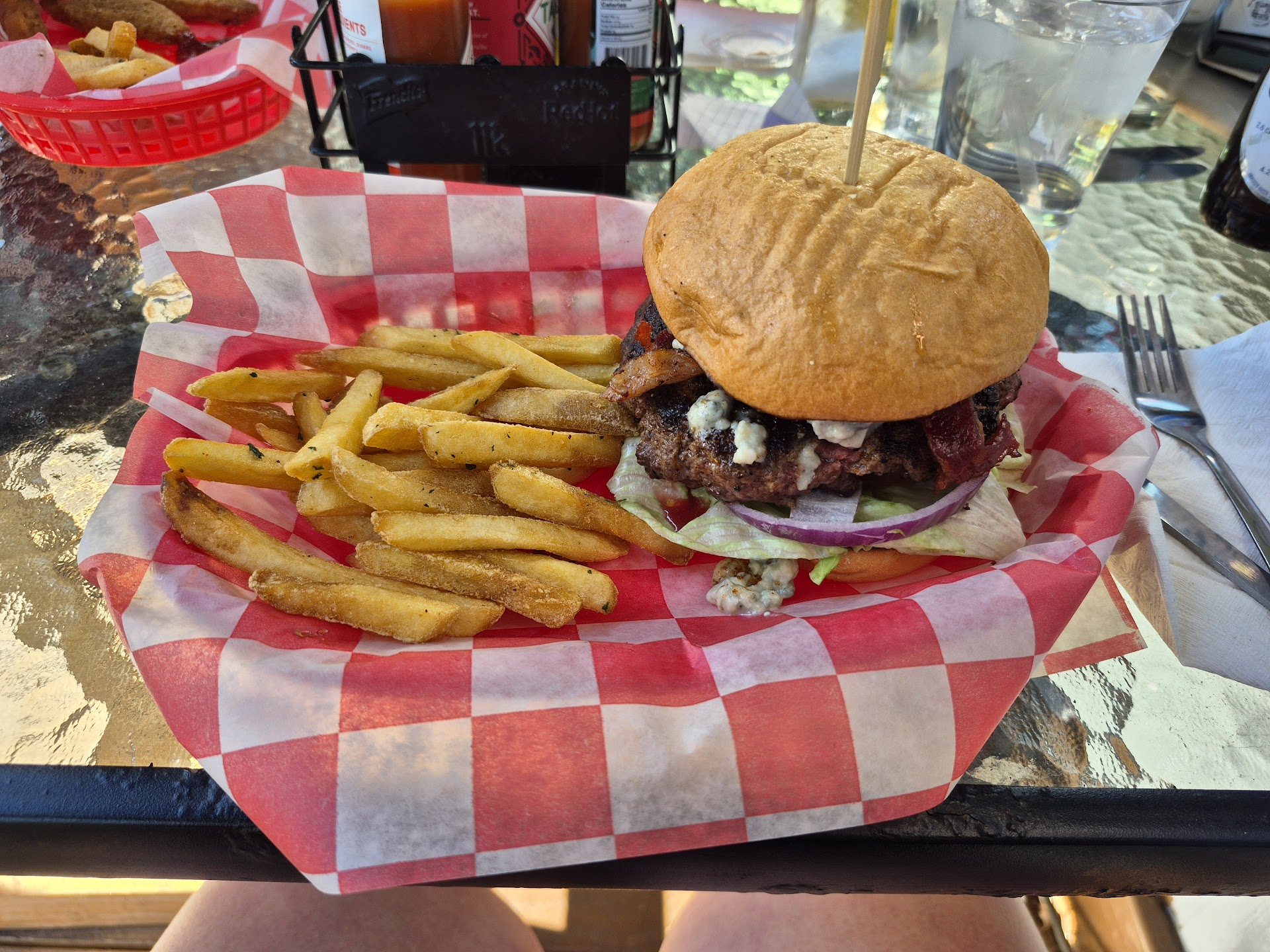 Read moreSo... I have mixed feelings about this restaurant. But im still going to review it. We decided to sit outside because it was a perfect day, and we had a toddler we were trying to entertain, and when I Googled, it said there were games. I use games loosely because it was corn hole (with no bean bags) and a giant connect four (no issues with it). Nothing more, but we made it work. We sat at a table and were asked to move by the workmen on the roof. A couple of other people arrived and tried to sit outside as well, but after about 10 mins, they were asked to go inside because of the work going on. Eventually, they stopped, and we weren't told to go inside (probably because we were close to the building and they couldn't see us). As far as the service, everyone there was very nice, but....it took a long time to get service to our table and it took about an hour for us to get our food after waiting a long time to order (2 burgers and one kids meal). The plus side is that our food was phenomenal. I'll probably go back just to see if it...