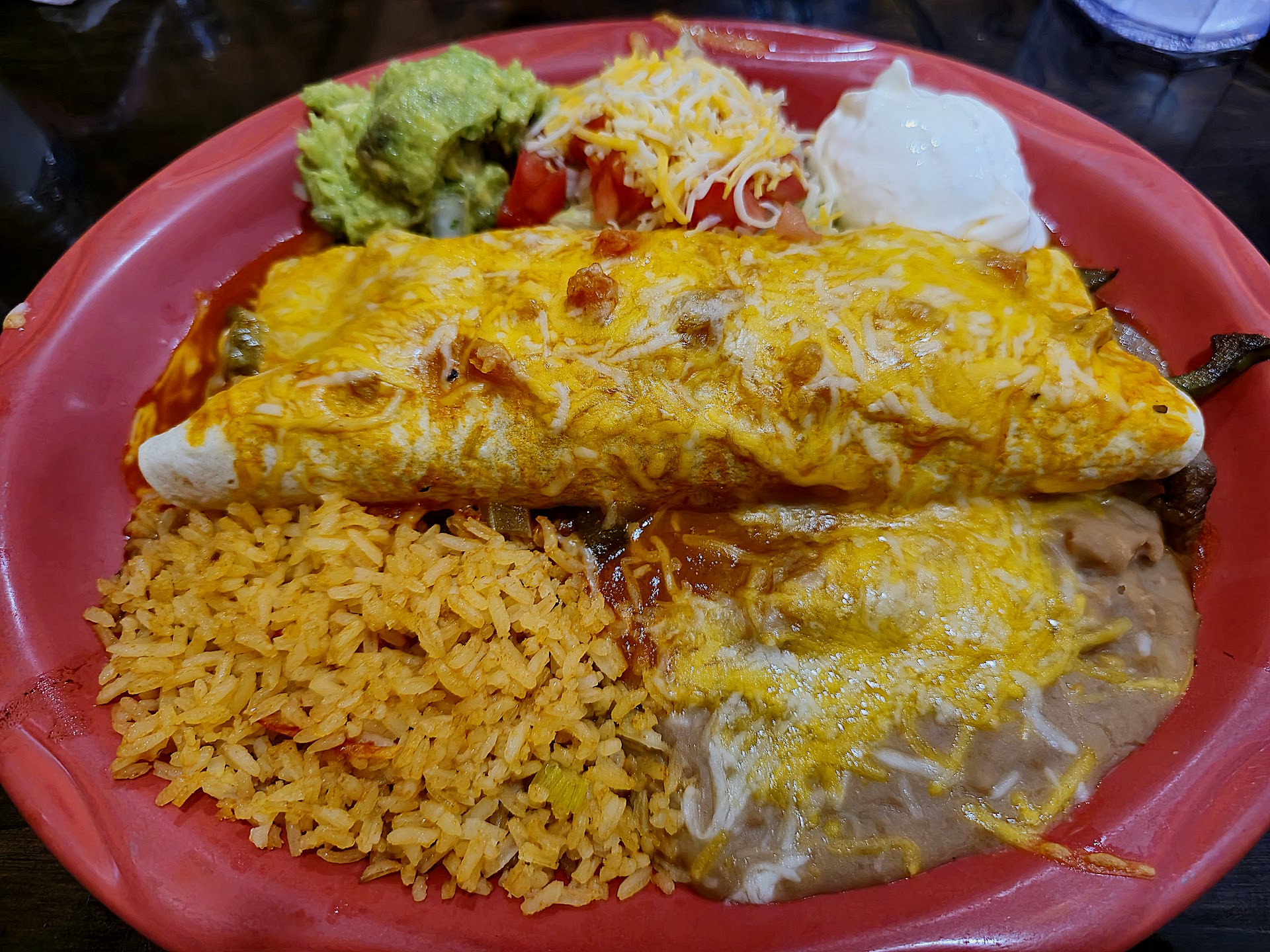 Read moreNormally one of my favorite places to eat, Saturday was a disappointment. I came for shrimp enchiladas one more time before heading back to Virginia and we were quickly seated, given our menus, chips and salsa and drinks. When it came time to place our orders, I was only then informed they had NO SHRIMP! That would have been good information to pass along when you seated us and handed out the menus!! So I had to make another choice rather quickly, as we had been seated some time before the waiter came back to get our orders, and I picked the Carne Asada Burrito $17.79 Flour tortilla filled with sliced skirt steak. Topped with sauce, melted cheese, lettuce, pico de gallo, and guacamole. Served with rice and beans. The steak was tiny pieces of inedible, dried out chewy stuff! I would have taken a picture, but I'd forgotten to bring my phone. I really wish I'd made a different choice for my last meal here, or been able to have my favorite Enchiladas de Camaron $16.79 Two enchiladas filled with sauteed shrimp, onions, and tomato. Topped with queso dip. Served with rice and beans. You win some, you lose some, and this was...