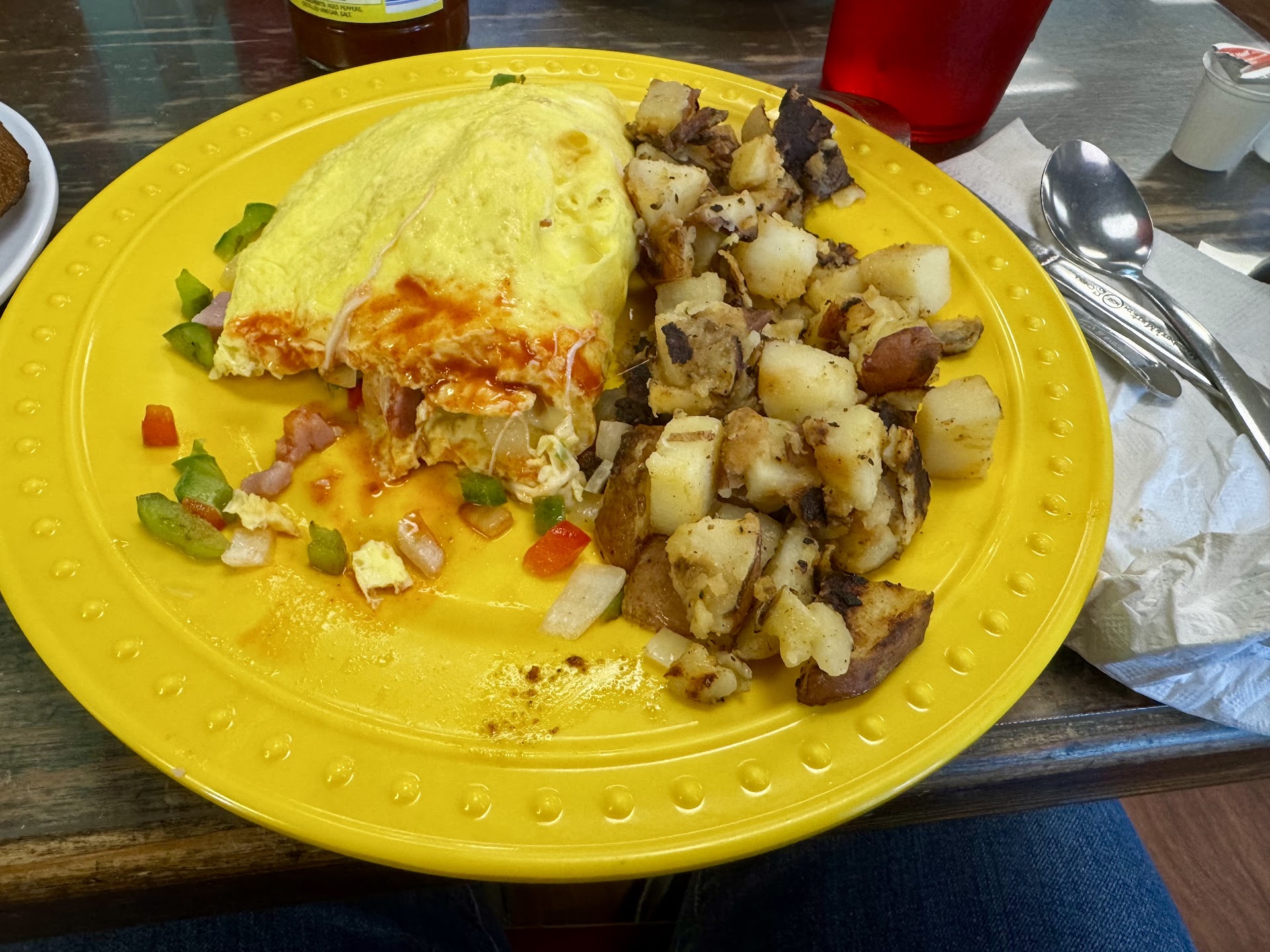 Read morewas unclear if we were supposed to sit ourselves or wait, I was having a business meeting here tables were very small and cramped but we tried to make it work any way a few of my customers visit here and asked if I have been there yet. waitress never checked on our coffees and when I got my food the grits were thick and lumpy I had the rancho bene supposed to be a ranch style eggs Benedict with home fries. The eggs were clearly not pouched in boiling water maybe they were microwaved yoke was hard the salsa was way too much smothered over all of it the English muffin on bottom was wet and soggy and the home fries were boiled and not browned at all pretty bland. when waitress saw I was not eating it she never addressed me if there was something wrong with mine and avoided eye contact and we never got any more hot coffee served to us. When she came by with check she asked me if I was done and I said oh yeah I am done this was not to my liking at all she did say can I give you something else ...I said no when I went to pay for bill she never offered to take it off bill.. needless to say I paid bill and did not tip if she could not care how she serviced us I was not going to reward her for poor service. While we were there seemed like the whole staff was behind sitting bar area talking louder then the whole restaurant with all their personal conversations and speaking of other peoples business. They did greet the ones they knew warmly and said goodbyes to them but I never saw them refill any one else coffee either. I do not think we will...