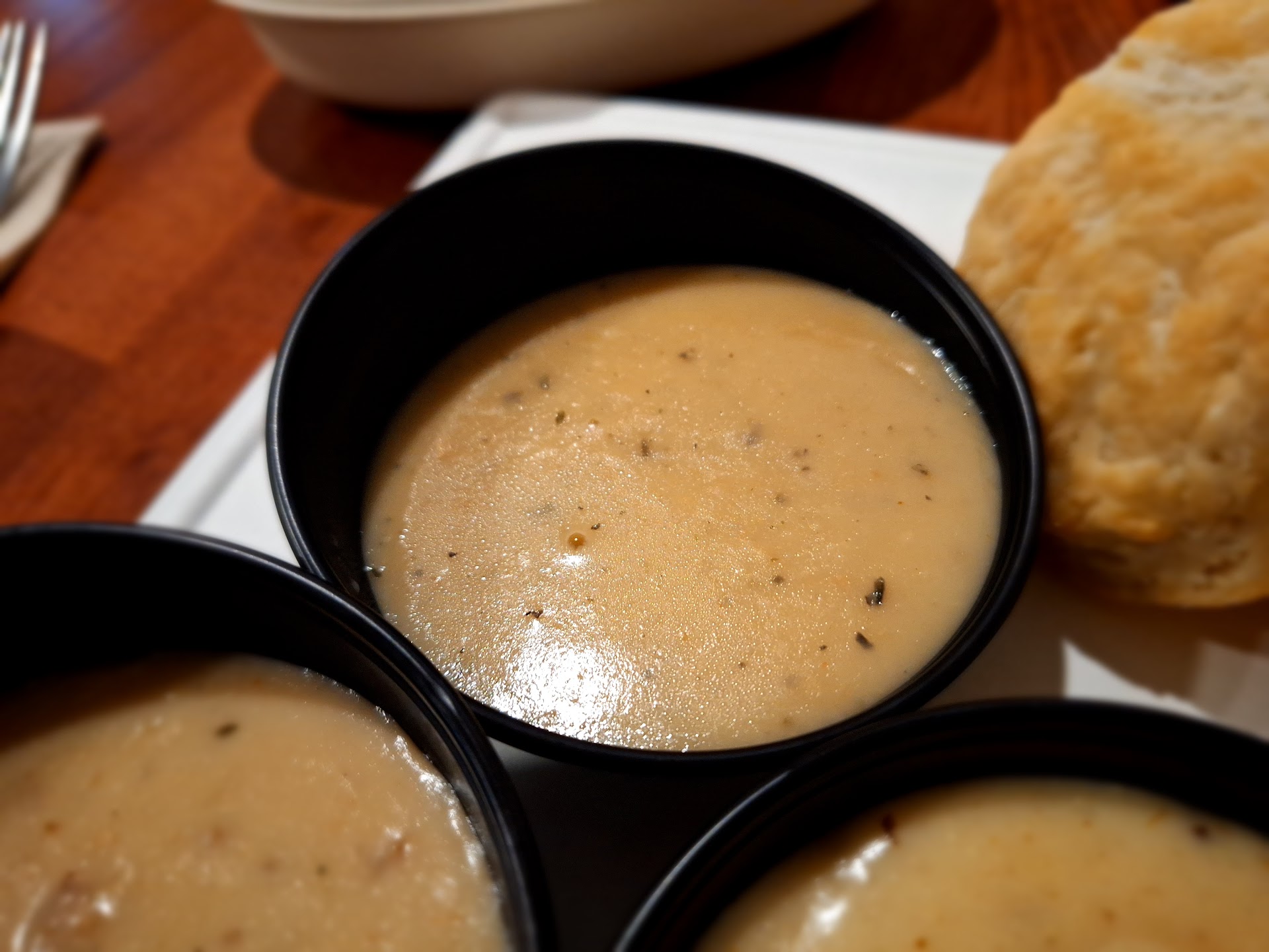 Food was amazing! I had the biscuits and gravy (they have 4 options to choose from). I had the chicken and herb (savory, flavorful; think thanksgiving in a gravy), bacon (my favorite out of the bunch), and sausage gravy (perfect balance between thick and runny). The biscuits themselves were awesome; flakey, buttery, not overly dense or dry. I also had the breakfast potatoes to help pit up any excess gravy (there was none). Delicious food.