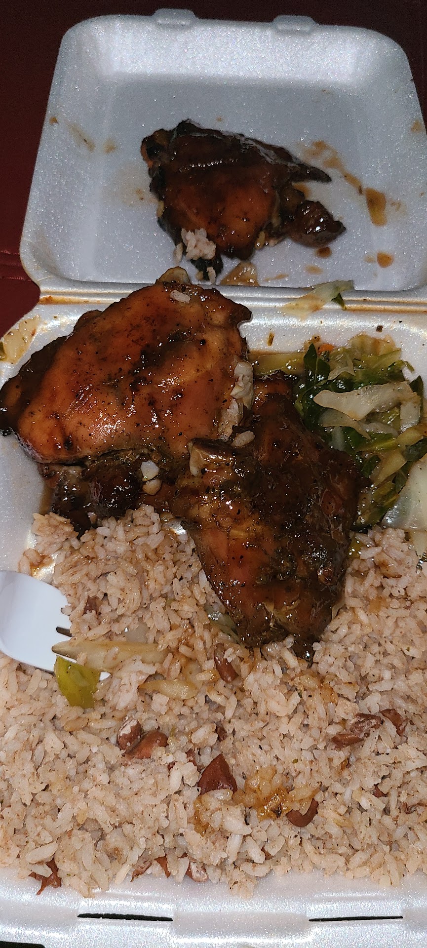Read moreI've been a customer for over 3 years and it's always a hit or miss on the food, more hits than miss. The Food is great but sometimes it is a little over cooked (I always get the jerk BBQ chicken 😅). I have noticed a lady in the back which I'm guessing is the chef and have to take a moment to brag. The last two weeks we ordered randomly and the food has been amazing!!! The rice was soft and the chicken was soft and juicy! The cabbage like always great.