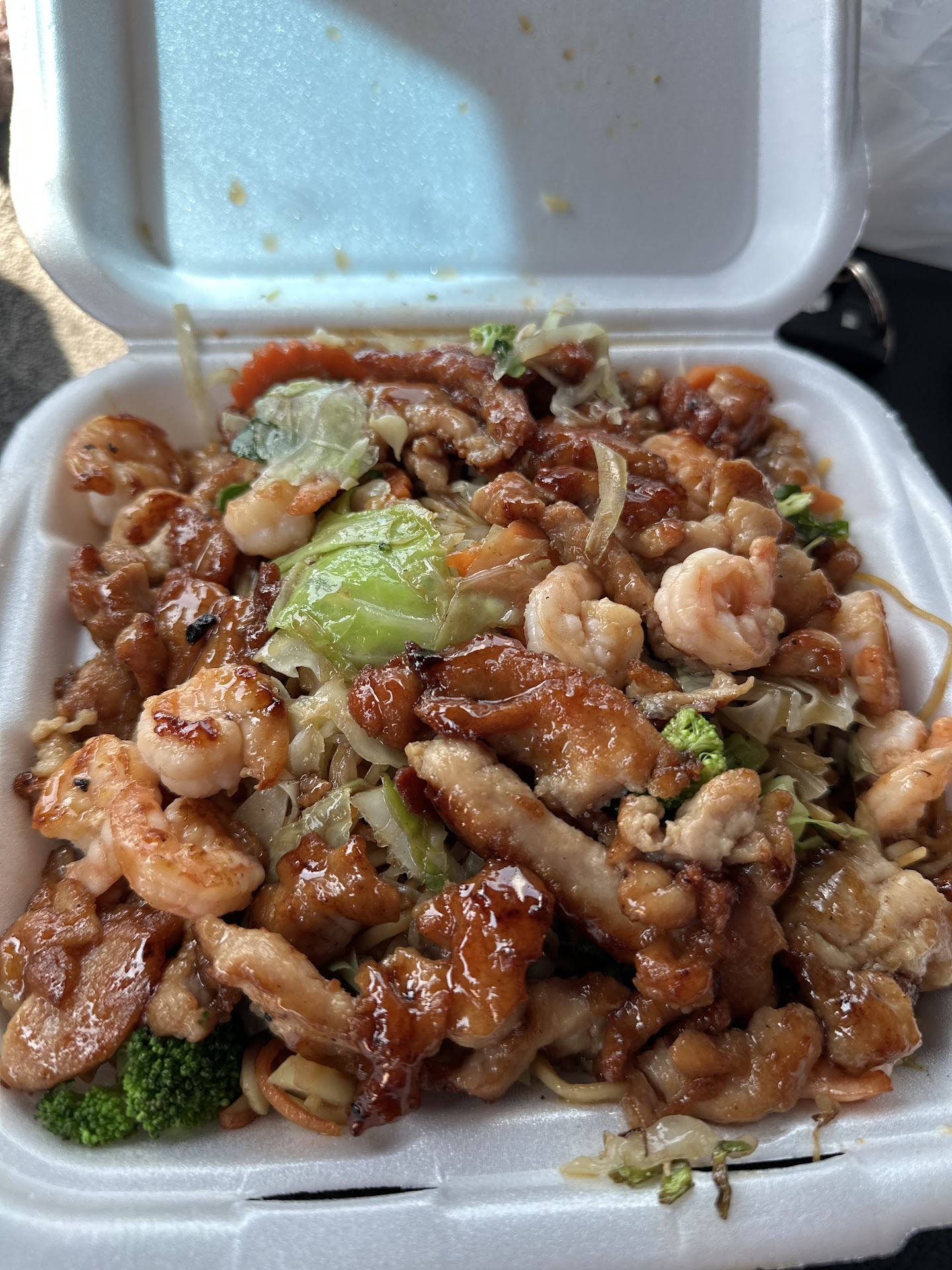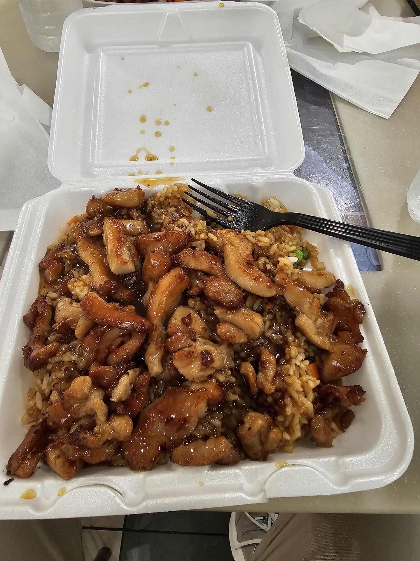 Ā Ā Ā Read moreThe food was HOT but that doesn't mean it was FRESH. The cook had splattered vegetables all over the cook top and scraped them back to the center and dumbed them on my plate. It was luke warm with no seasoning not to mention the man working cash register used every opportunity to upgrade my bill when my meal was clear: Teriyaki Beef and a cup of water. He even went so far as to try and ring up a combo without asking me. Very disappointed but I should've known; no good take on Japanese sells Spanish style...