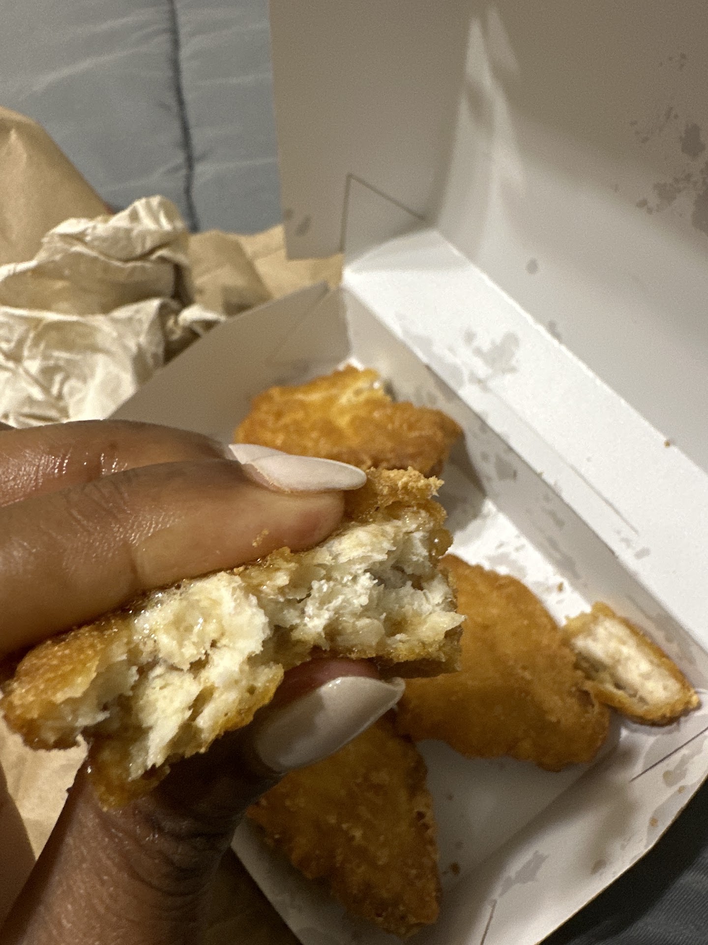When she gave them to me she just said have a nice night. I find it offensive that the mangers at this place cannot even acknowledge a mistake on their part and take the initiative to make it right. I stood there in disbelief for a second and had to ask if there was anything they can do for my inconvience - time wasted. She said I just did I replaced your nuggets. I told her that that is not replacing my nuggets she was just giving me my order I payed for and had to come back for. She then offered me a measily small fry or drink. Why would I want that when I just ordered fries and a drink, and how is that an acceptable offer to a customer who just withered time of my life away in your decrepit lobby?