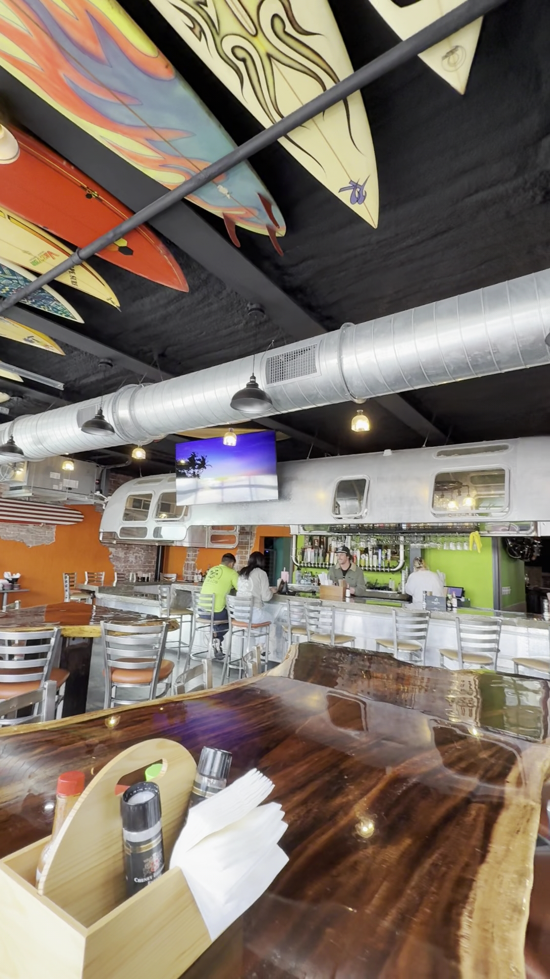 Read moreI have been to Nomad's quite a few times and am in the area 2-3 times per week. The inside has a great atmosphere, which gives it a nice vibe. Lots of cool touches like the epoxied tables with fun photos and some gorgeous artwork by local EGAD artist Derek Gores. The ceilings are quite high in the main dining area, and with the cement flooring it makes the huge space pretty loud with people chatting. They also have an al fresco area that overlooks Eau Gallie Blvd. Their drink prices are pretty standard, food prices are somewhat high, though probably also pretty standard. I do not eat meat and the options for me were slim. I used to get the tacos with black beans instead of meat, and they were quite good. Unfortunately recently I've been going through a gluten or wheat intolerance and to be honest I don't think there is anything on the menu for me anymore other than maybe a salad. I've had ups and downs with service. The worst case was when our server took our order and never returned. I had to go to the bar and ask the bartender to check on her. Eventually another server showed up to take her place but our food didn't come out for a long time. The best service I received there was very good. The server was so nice, friendly, and proactive with things like water, extra napkins, and condiments. She was also very accurate with our orders, including my multiple mods and requests for extra sour cream. I love it when I don't have to ask for things a 2nd or 3rd time. Parking in the area used to be so-so, with it being busy when there were special events going on. But since Nomad's opened the parking has been very scarce at night, on any day of the week to be honest. I think there are multiple factors but a big part of it is the popularity of Nomad's. The overall experience has been good, but not...