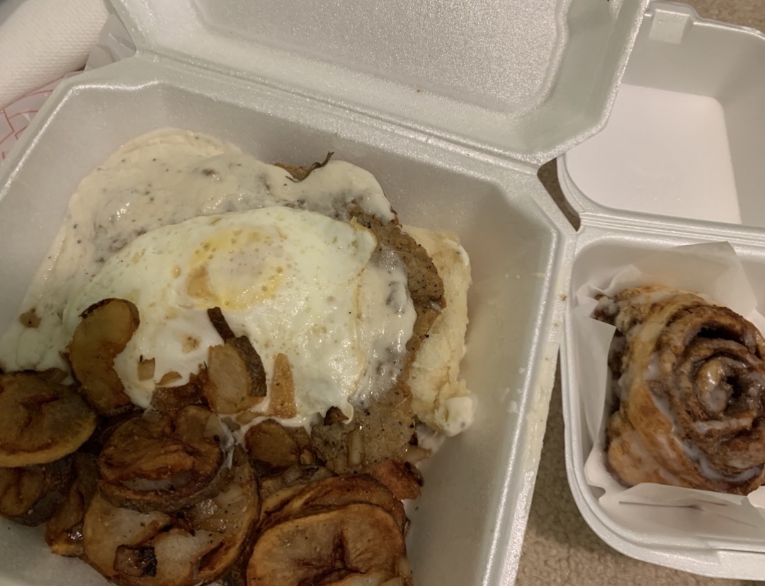 I really enjoy how quick they are to take people's orders and move onto the next customer along with getting the food out quickly. You can tell the food is made fresh and really enjoy their homemade cinnamon rolls and bread pudding. Nothing like a fresh homemade hot cinnamon roll with icing on it.