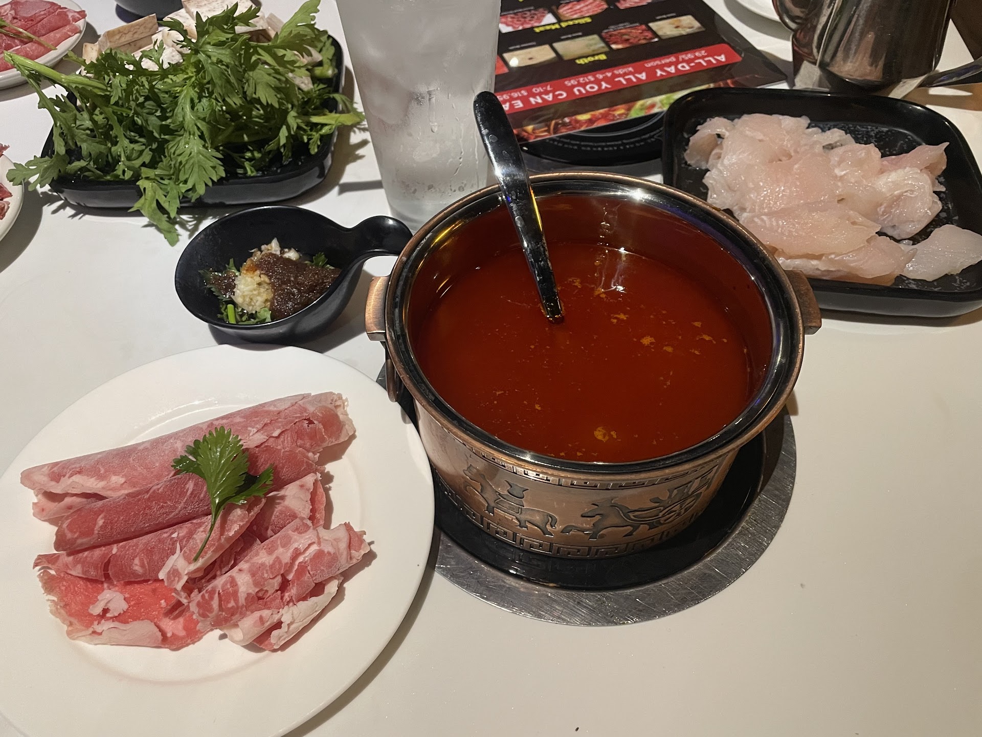 Read moreUPDATE Owner replied... They are going to look into it.. What a joke. When I spoke to someone that day and they could care less. Doesn't change the fact that I got charged $30+ a plate for much less out than advertised on their menu, that was after calling ahead. Service was some of the worst I have ever seen. Questionable how long some items had been out after we were told about the large party the night before and we were late for our appointment. A ruined, disappointing meal ALL AROUND. But by all means... Please look into it... And your very welcome for the feedback. Trust me I'm sharing it with everyone I know Came today with 3 other people for hot pot & very disappointed. If you are going to sell hot pot, you should have a stocked area. We called ahead & asked if you had items in stock (especially veggies) due to 3 prior visits where your advertised items were not available and we constantly got the excuse of "changing vendors" let me share something you guys may not know..PUBLIX HAS VEGGIES! Go buy some and stock your area! Plus... The veggies you were always lacking were veggies used in other dishes.. How could you always be out??? . We were assured THIS TIME you had plenty of veggies & everything in stock. meat, sauces & noodles were bare. We had to ask multiple times for the veggies we were assured were plentiful. Funny they couldn't stock for customers but, the kitchen kept coming out and taking from what little was out to cook in the back!! The service was atrocious. No napkins, silverware, plates even serving spoons we given. I had to chase people down to get these items EACH TIME. 20 mins to get a pot of broth to our table, then as the other pot was boiling we noticed our server never even turned my pot on. $70+ wasted. Yes we did speak to the owner or manager (not sure who he was cause he only nodded his head and walked around a little) he gave us a story about the manager abandoning them or something. Another employee gave a different story that there was a 10 top last night that stayed late. (Don't see how that could affect their ability to stock the section properly on the day we were there unless she was trying to say the items that were out were left over from the night before still?? Ewww). We were late for our salon appointment due to the lack of proper service. But of course they wouldn't care. He Didn't offer TO DO anything, just give excuses. We have been there dozens of times over the years, being very loyal since they opened. NEVER AGAIN. Do yourself a favor and go ANYWHERE ELSE. And for the person who owns this place. If you can't open properly... DON'T OPEN. Or Just don't open the hot pot till it's clean and stocked properly. Still in disbelief at how many things were wrong with this visit and not even 1 sorry or how can i fix...