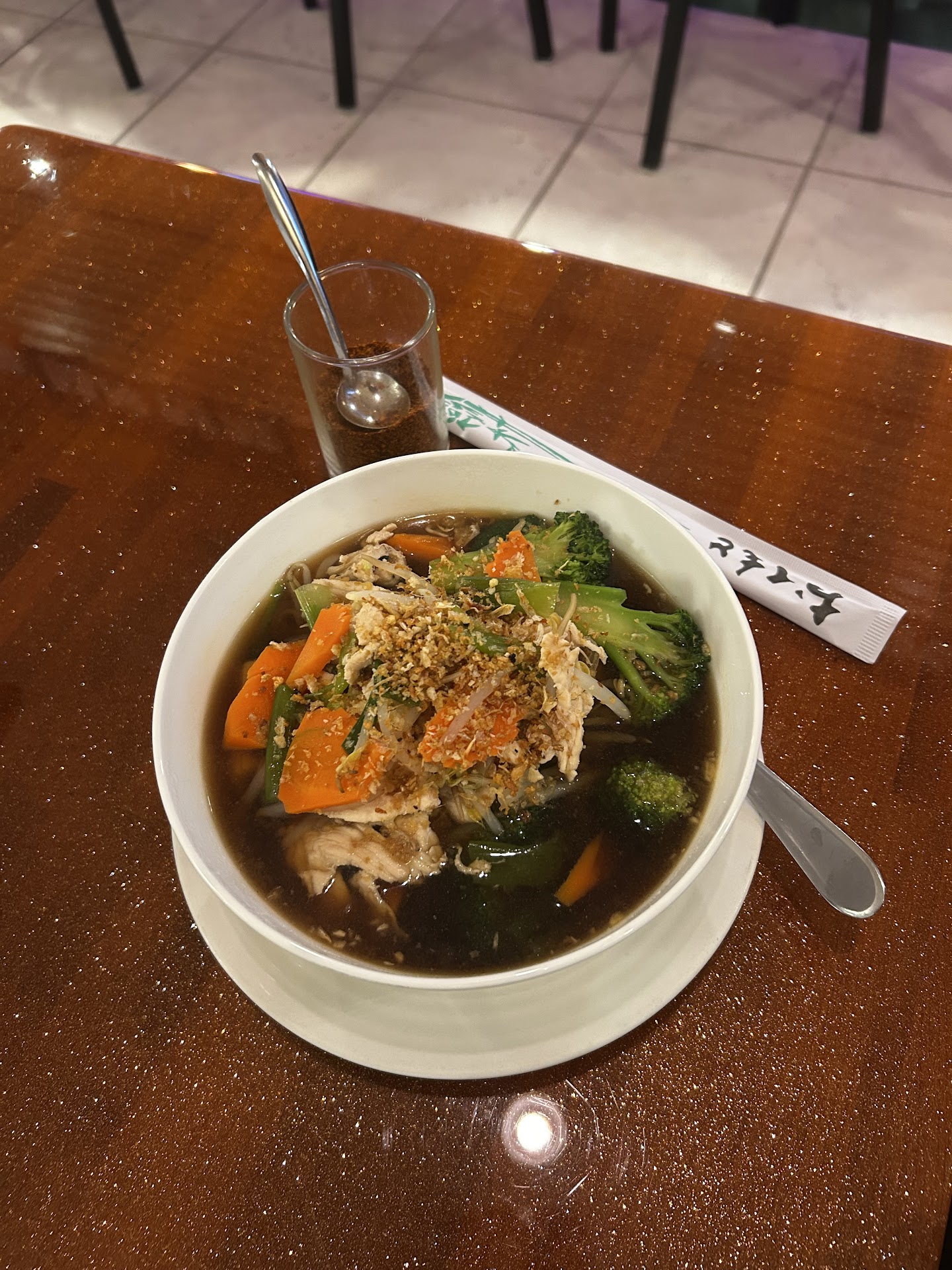 Letās talk about one of my go-to orders: the chicken Thai noodle soup. š Around here, I call it āSarah styleā š¤£ (yes, thatās me). I get it with fried garlic, broccoli, and the rich, comforting brown broth. Pro tip: toss in some chili flakes for a spicy kick that takes it over the top. Itās totally nom nom yummy delish.