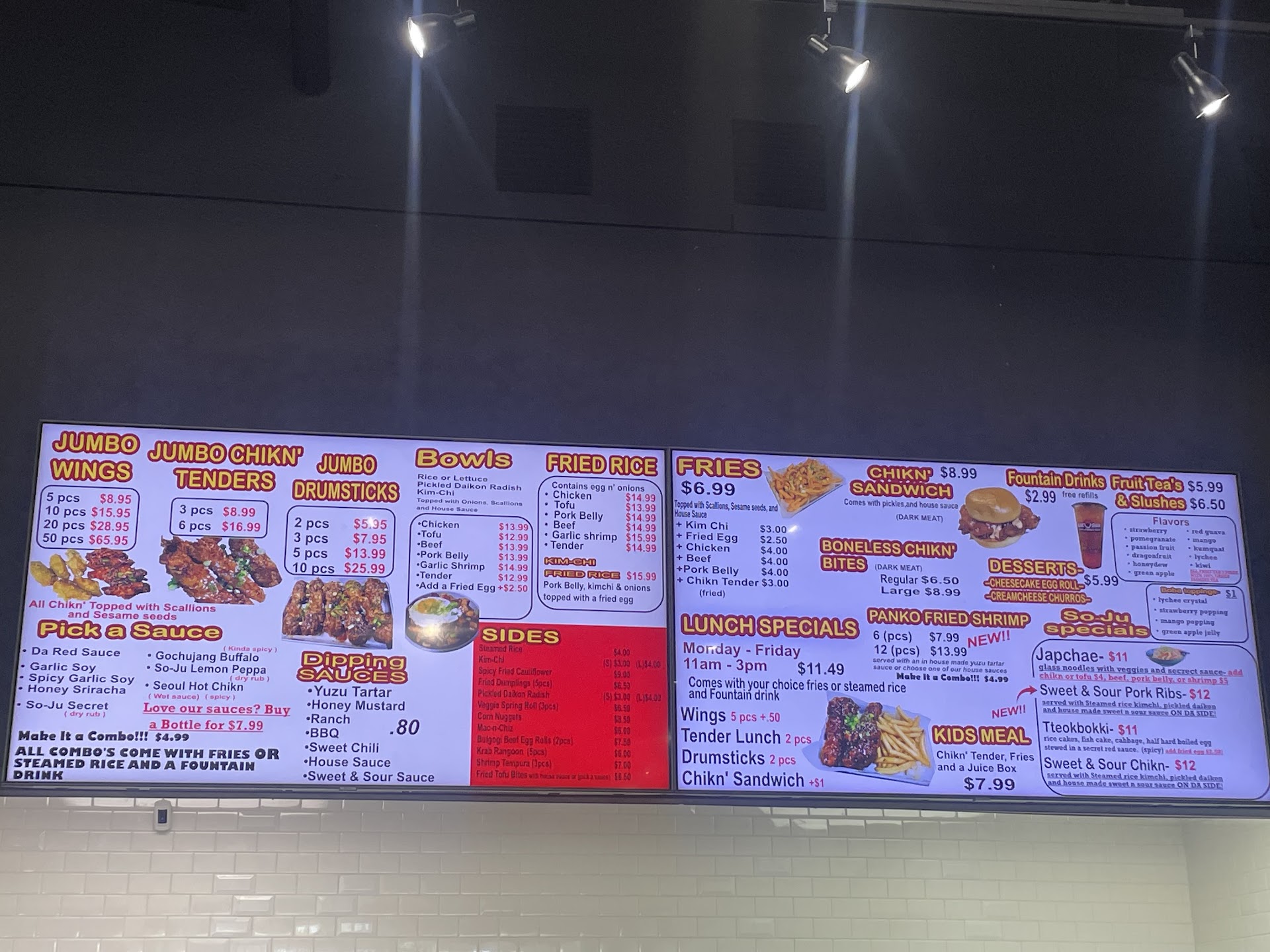 This place still has that new restaurant smell and the interior is spotlessly clean. Unlike, Senzu, so-Ju Chikn is co-owned with his brother Hung. I placed an order for a 2 piece tender meal and a Beef Bulgogi bowl. My waitress for the meal was Mary Ann. I found Mary Ann to be quite charming and a delight compared to the obnoxious Zoomer at Senzu.