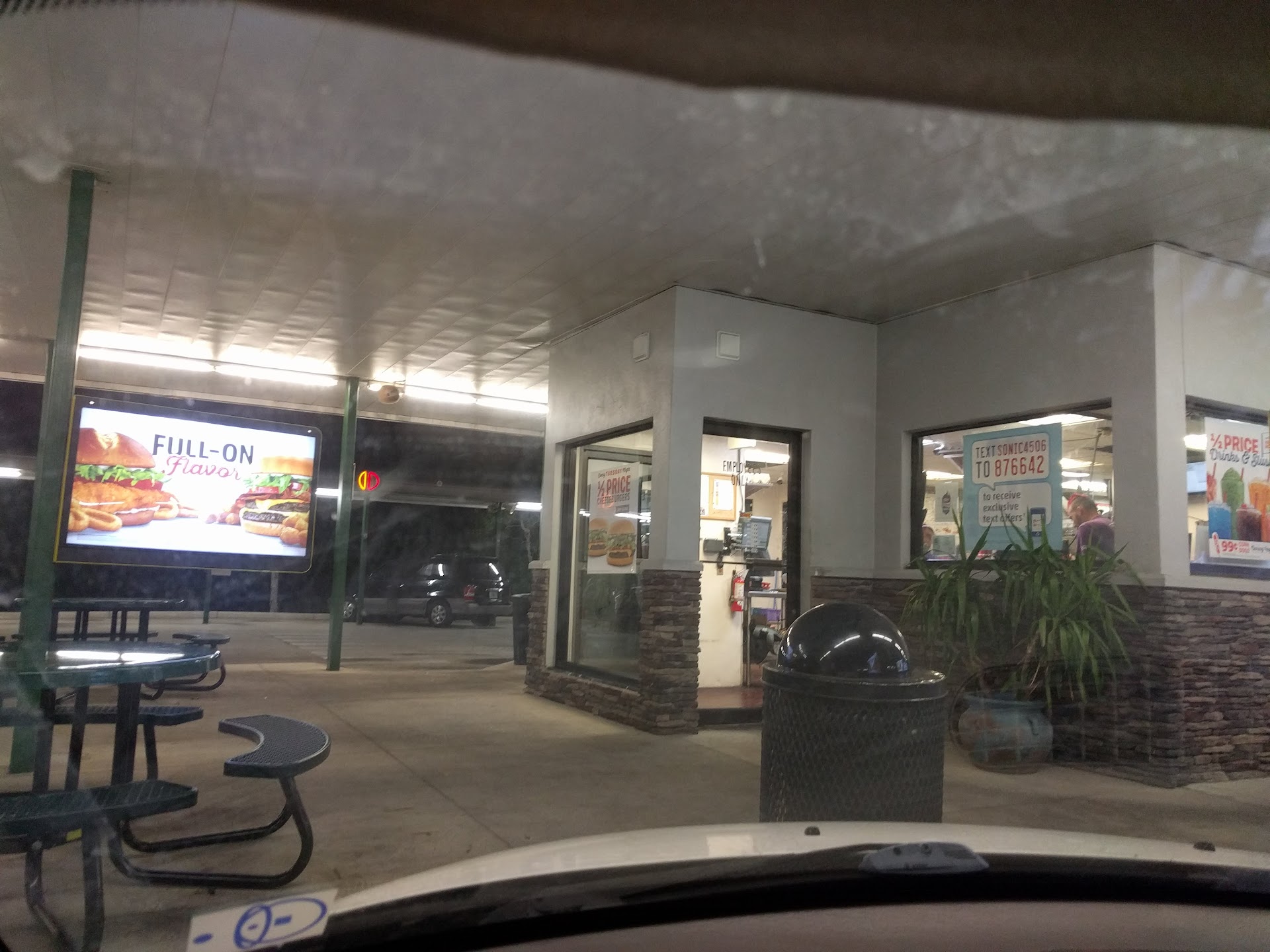 Read moreHave ordered thru driveway at this Sonic before with no issues Until Yesterday Sept 1 2023 Friday around 3pm Ordered hot dog meal large fries combo with large coke and cheeseburger medium combo meal with diet coke. It was busy Lot of people in front of me. With my order Why they would put the 2 hotdogs with toppings the first thing in the tiny bag first because all of the toppings ended up all over the bottom of this tiny bag.If that wasn't bad enough. My cheeseburger second bite into it and I kid you not and very gross and disgusting first I thought it was a very old onion that I bit into. No Worse A PLASTIC TIE. that is usually found tied up around bread. PLASTIC TIE was in my cheeseburger. Spit food out immediately. Was so disgusted threw out entire food. DONT COME HERE WORST SONIC EVER!!!!!! I have eaten at many fast food places Never have I Ever bit into a burger with mouth full of food and a PLASTIC TIE in my food my burger. I tried calling to complain to get my $$ back. Of course nobody picks up...