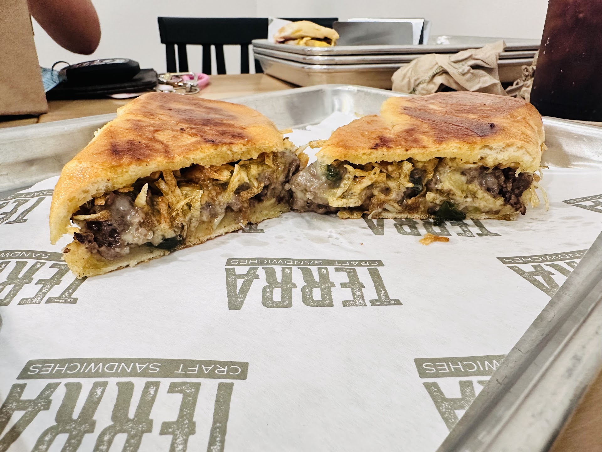 Terra Craft Sandwiches is a relatively new fast-casual sandwich shop in Melbourne. The counter help today was Andrea. Andrea was very helpful and extremely knowledgeable when it came to the menu. I put in an order for a Brisket, a Ribeye and one Chicken Salad sandwich.