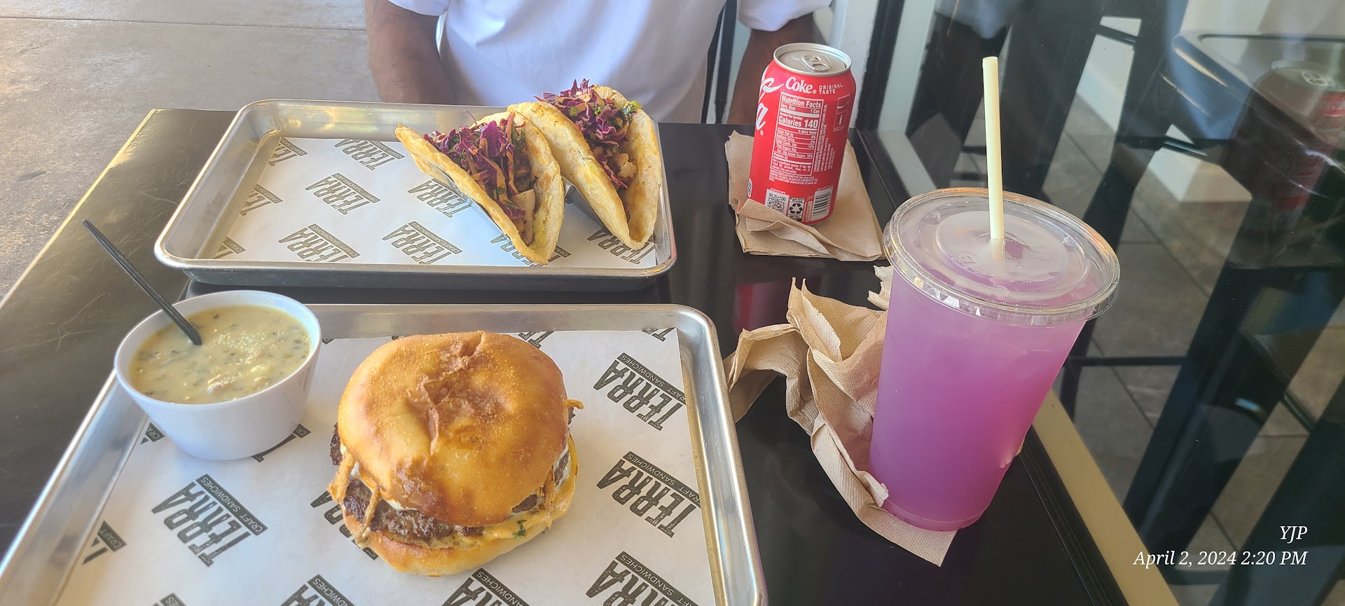 We walk in and immediately saw a gentlemen sitting at a table. The ladies at the counter had such a great attitude and made us feel welcome right away. Immediately I felt comfortable like you knew them for years. The energy was very family oriented (latin)😊 I scan the menu and began second guessing all the choices as i didnt want to make a mistake and pick something i wouldn't enjoy the first time. They didn't know it was our first time and how sort of picky I can be at times and the recommendations were out of element but still I proceeded. As we are trying to narrow down our choices the gentlemen tells us the special is amazing and I'm beginning to wonder why this employee was so excited about the menu. Didn't think anything of it and instead I giggled and said well I trust your judgment that it's good so I'll go with the special Italian Smashburger AND a White lasagna soup! He got up and said "don't worry I'll make it for you guys." As my husband is ordering I turn and tell the gentlemen, Rafael, "well if you do make it please make sure you add extra love in it!" My way of breaking the ice feeling a little shy. He had a smile and attitude that rubbed off and made feel comfortable in the setting I was in. I grabbed the butterfly 🦋 lemonade to try something different. The color alone I KNEW it was good. I tasted the kiwi green tea and jeez they truly did put their hearts (figure of speech) into them! Once I tasted it I KNEW the food was going to be good but how good..we will find out next.