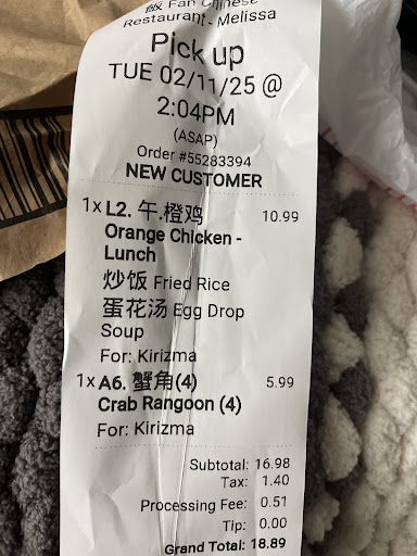 The food was simply amazing—every dish was packed with flavor and prepared with great attention to detail. I highly recommend the Mongolian Beef which was perfectly seasoned and cooked to perfection. The egg rolls were fresh and crispy. The service was just as impressive as the foo d. The staff was friendly, attentive, and knowledgeable about the menu, offering great recommendations. Despite being a busy evening, our food arrived promptly, and every request was met with a smile. Overall, Fan is a gem for anyone who loves authentic Chinese cuisine in Melissa.Whether you’re dining in or ordering takeout, you won’t be disappointed. I will definitely be coming...