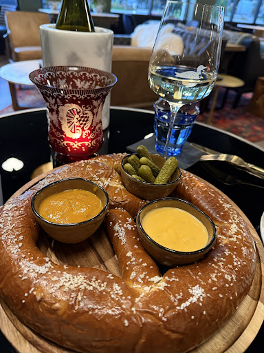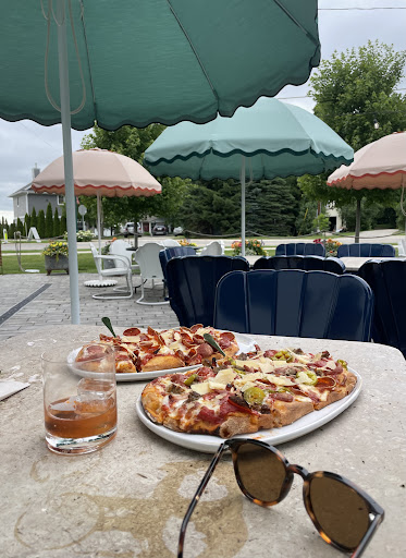 Stopped in here around 5:30p on a holiday weekend, was seated right away (2 of us). Food is mainly finger foods with some craft pizza's and a great bar menu full of wine, beer, and spirits. The atmosphere is cozy, somewhat loud if busy but not too overbearing. Some TV's scattered throughout and the occasional guest musician. There is a nice outdoor patio area to escape the inside bustle. Restrooms are very clean, single person only. The location is great, near shops and dessert. They do not have any dips or dressings, but I asked if we could bring our own ranch for the pizza and they didn't have issue with this. I ran to the general store down the road and got a travel size ranch...