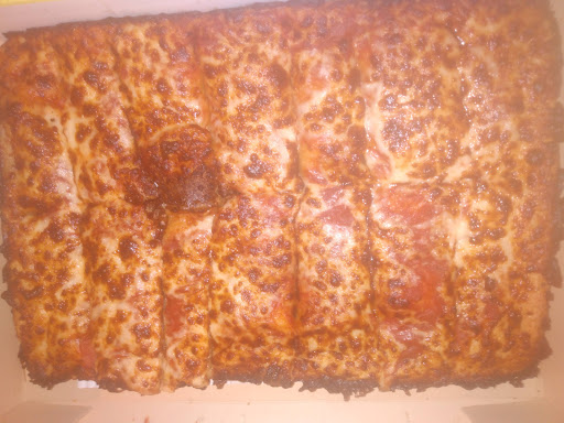 . Since this store opened its gone from not bad to bad to worse. The deep dish I used to get for 9.99 was so inconsistent I just had to stop, now everything else is hit or miss but mostly miss. The wings were from last order, a one time mistake I wont make again. This pizza was supposed to be light sauce, whatever...but this was literally the thickest/toughest to chew pizza I've ever had in my life. Not to mention the width of the crust, like 6" in most spots?. Ill admit someone must be cleaning the pans finally because it actually wasnt as greasy as normal but still overall pretty nasty, mostly the cheese that seemed to be not melted fully? Or in layers like a lasagna, very strange. Barely cut through the pizza, 1/3 of the slices ripped in half when trying to seperate them. I would suggest looking at that food warmer box and the oven among other things, even though I use the tracker and get there promptly, I cant help if they dont see me when I walk in and then take a 5 minute+ phone call instead of handing me my pizza while it sits in that nasty hot box with a flyer touching my food and the box improperly closed. Is a large only 8 slices? The pictures doesnt do how bad/thick this pizza was...