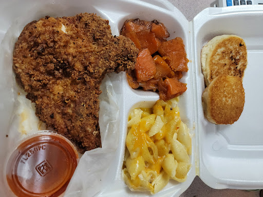 I like to support small black owned businesses. I will pull up to a bbq grill on the corner or food truck to support. Yesterday I decided to try Alcenia's. I saw it while working a conference downtown, and when I was looking for fried pork chops to eat, I thought I would try it. I went on the website to check out the menu. WARNING: The prices on the site do not match what you will pay at the restaurant! When I saw fried pork chops, I figured that it came with 2 pork chops, but when I called in my order, I found the dinner came with one. For the price, I would usually get 2 chops at other soul food restaurants, but I guess they charge more since they are downtown. Maybe it should say "pork chop plate" instead of it being plural. So I purchased the pork chop plate with Mac n cheese and yams. I wanted a slice of German chocolate cake, but they didn't have any. So I decided to get something outside my regular and try the bread pudding with the bourbon sauce. When I arrived to pay at the restaurant I wasn't expecting the price hike. I would have gone somewhere else to eat. It said $17.95 for the pork chops on the website, but you see on th receipt it actually says pork chop $19.50. The bread pudding is $5 on the website, but in store, it's $8 plus $0.50 for the bourbon sauce. The container wasn't full for the price. The cashier just said that she doesn't know why they won't update the prices. I did ask about how much an extra pork chop was, and I was told $8.50. Now to the taste. The yams were good. The Mac n cheese lacked cheese, sauce, and flavor and was kind of dry. The flavor of the pork chop is in the batter, but the batter was falling off when I started to eat it. This is a thick pork chop if you like them thick. The chop itself was not seasoned and kind of dry. The bread pudding bread was a little tough at the top but got more moist and soft towards the bottom. Do not eat the bourbon sauce if you are a former alcoholic, can't drink alcohol while on the job, or if you don't want to have a buzz in the middle of the day. This sauce is a straight shot of bourbon. Someone will smell liquor on your breath after eating it. I'm glad I just did a little sip. For the price, it was not worth it to me. I was looking at the pictures of the catfish, and I like the larger fillets, but how much will it cost and what other sides would I try? I'm not sure if I will give them another try. But I just wanted you all to know you need to call and check prices. Do not go by the website. There is plenty of...