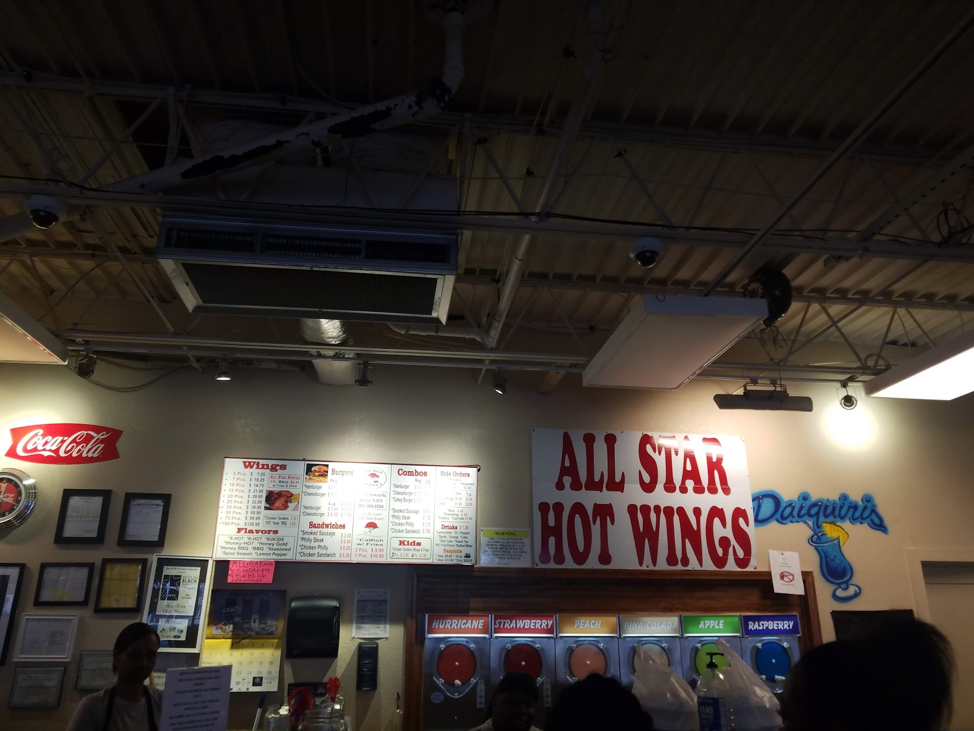 I love that the restaurant is so open with tons of tables and a few TVs, so you can relax and chill out while eating your wings. Also, All Star has a few daiquiri machines and the prices are not bad as well, so you can have some hot wings and a daiquiri to cool you off.