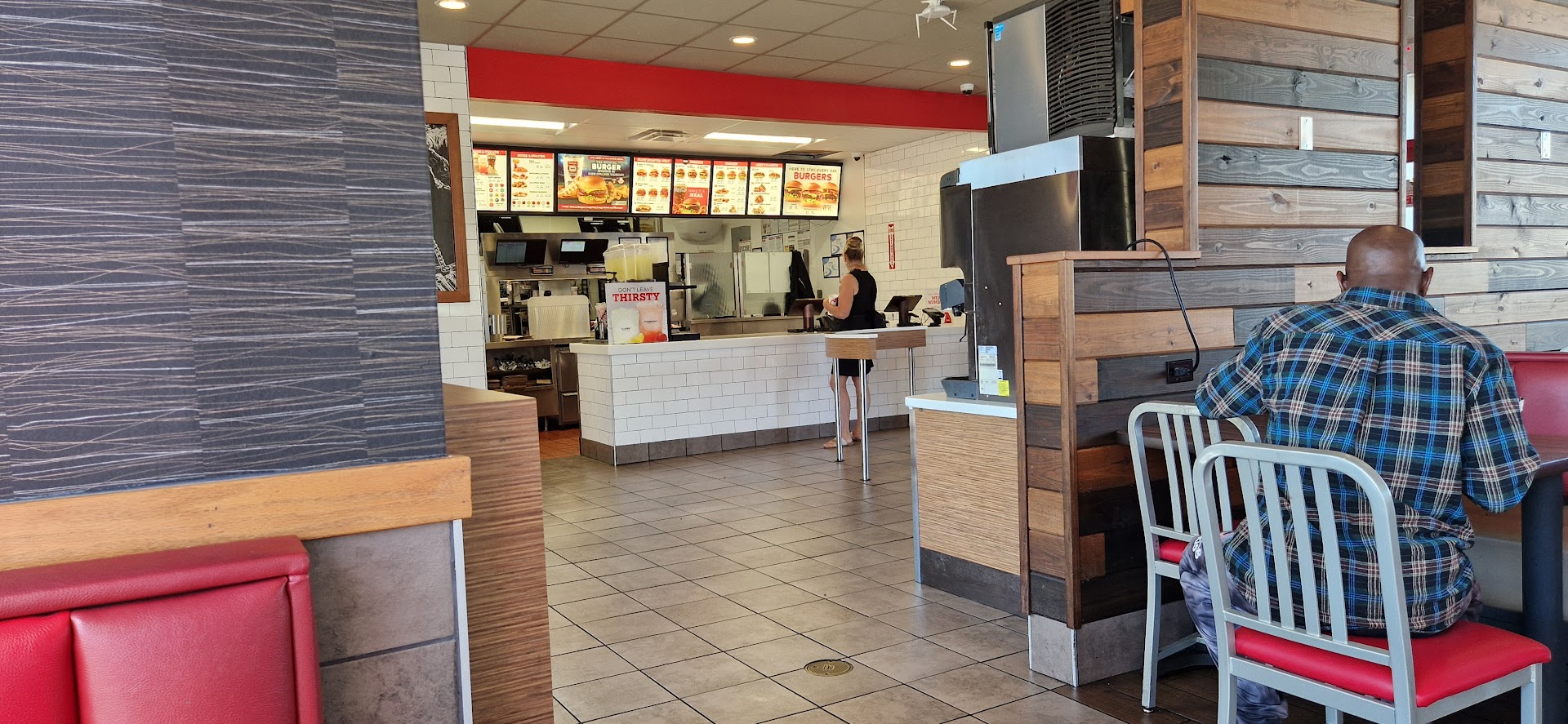 Read moreWent through the drive thru to get a #1 beef and cheddar meal and a chicken cordon bleu (sandwich only). I repeated my order three different times and she kept asking me what drink I wanted with the chicken sandwich. Finally she understood I just wanted the sandwich, not the meal. When I go to pay, she got an attitude with me when I asked if they do military discount (THEY DO NOT, BTW)! She then hands me a lukewarm Dr Pepper with no ice. I said “can I please have ice?”. She said “we don’t have no ice today”. Then she aggressively hands me my bag and slams the window. I drove around to the front of the store, walked in and guess what. They did have ice! I put ice in my cup from the dining room drink machine and left. When I checked my food as I was pulling out, my beef and cheddar sandwich looked like it was dropped on the floor and it was also room temp and sloppily made. The fries were cold and stale as well. Didn’t eat it. $18 for a sub par meal and experience is a joke. I should have known better since there was literally no one eating there around lunch time. Quit employing people that don’t give a crap about their jobs or...