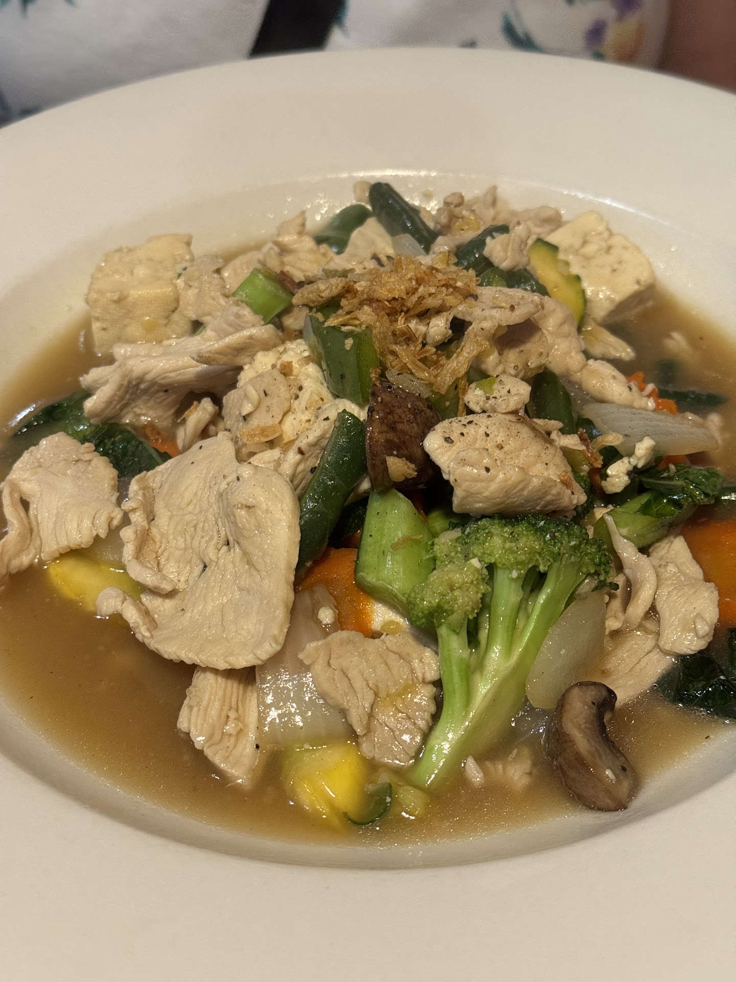Read moreHaving dined at well over 200 Thai restaurants across the country as a true connoisseur, I made a quick stop here while passing through from the Chicago area. The restaurant itself was pleasantly clean, and the young lady who served us was incredibly friendly. For my meal, I had the Tom yum soup, delicious. I ordered the basil stir-fry with steak, cooked medium-well. The beef quality was exceptionally high, and the stir-fry sauce had a fantastic flavor. While the steak could have been a bit more flavorful on its own, its premium quality truly stood out. My wife chose the stir-fry with vegetables, chicken, and tofu, and we were very pleased they could prepare it gluten-free, which was a huge bonus! Her sauce was lighter than mine but still delicious. Considering my vast experience with Thai cuisine, I'd personally give this restaurant an 8 out of 10. It's a testament to its quality that it ranks so highly among the hundreds of incredible Thai dishes...