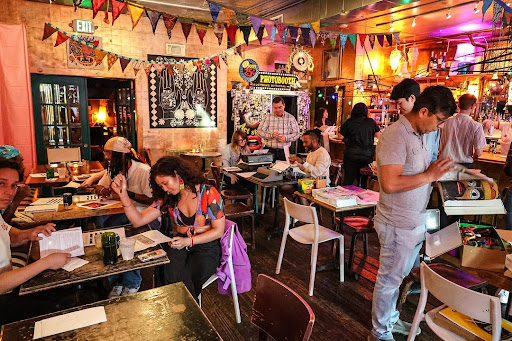 I m pretty sure the building is haunted. The little bar room is well laid out and decorated. It's not that the interior design is spooky or anything off putting. It s quite cute with a chilled out aesthetic. The staff are lovely and welcoming. So either their neat little vintage photo booth thing in the back has something extra or the actual shop space it s self is just charged up with some kind something. It s not scary or anything, just a notable feeling once inside that grows stronger the farther away from the door. Being haunted isnt usually a problem for a Memphis bar and DKDC is no exception. It probably actually adds to the experience. Check their calendar as their entertainment runs a wide variety of tastes and there s probably at least one night coming up that you d like. The lady bartenders I encountered were all very fast and friendly, although I ve taken to drinking only Sprite when visiting since the building is haunted and spirits and spirits...