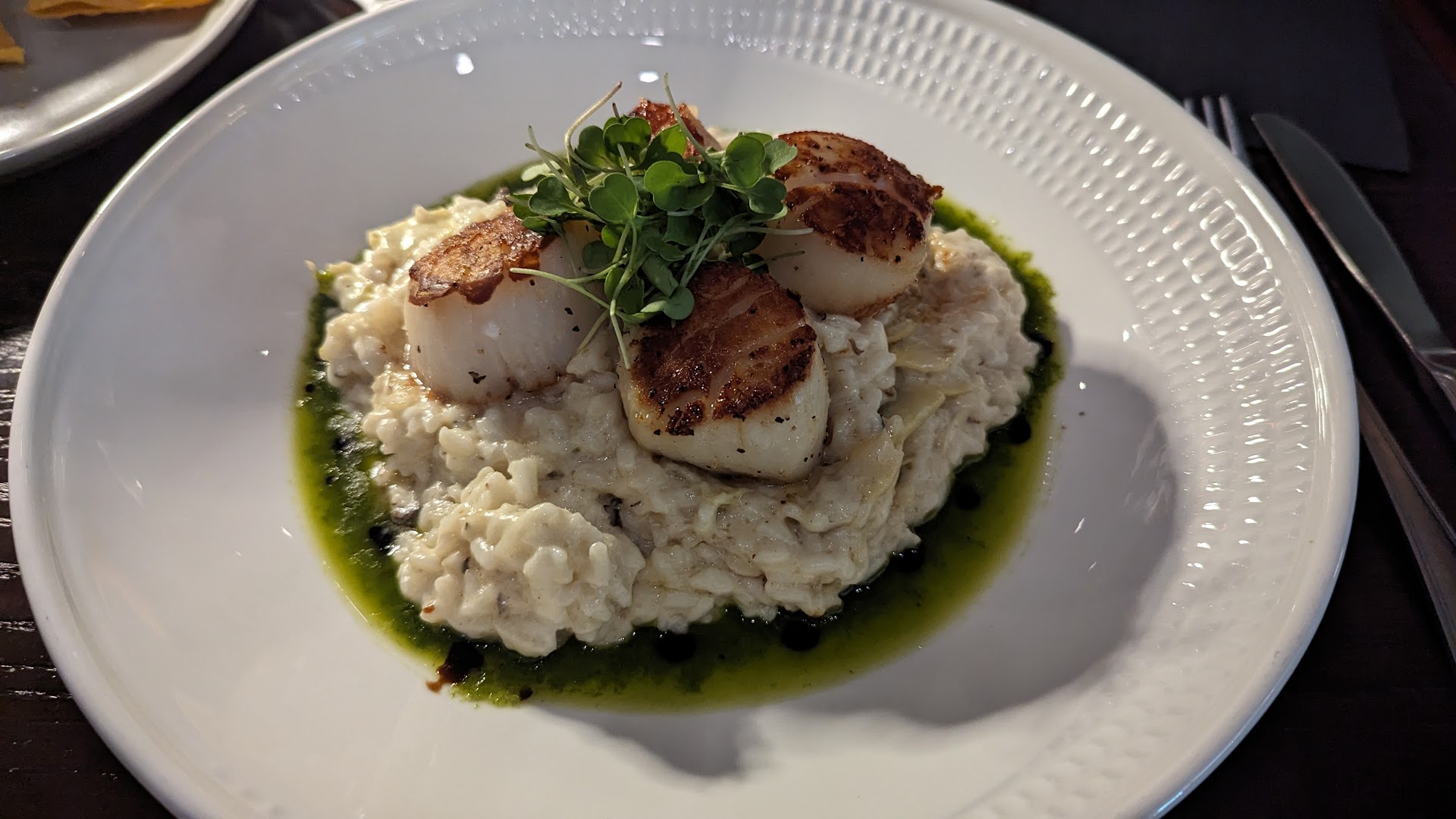 First, my wife decided to get a burger as she heard great things. However, for some reason it came out 10-15 minutes after everyone else's entrees of steak and short rib to name a few. The chef came out to apologize and let us know the delay, no big deal.
