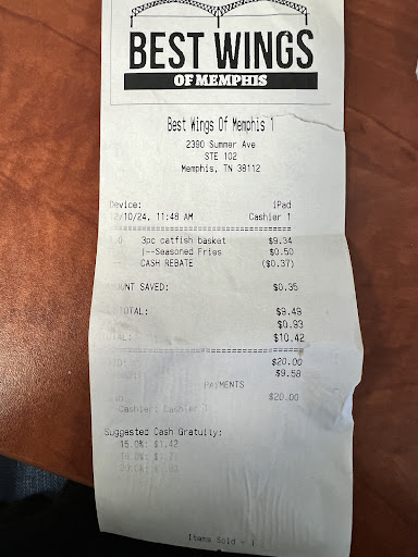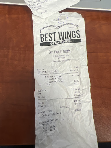 Ā Ā Ā Read moreMy family and I have been loyal customers to Best Wings of Memphis at the Summer and also the Elvis Presley stores for years. I must admit that the quality of the food of all things has gone from excellent to downright dangerous and criminal. This makes the second time that we've found paper chopped up, mixed in with the the slaw, and served to us the patrons of this establishment. Both of these incidents has occurred at the Summer location. We are really afraid to attempt another visit to this restaurant. Best Wings of Memphis, you're risking not only the lost of many loyal customers, but lawsuits as well. My suggestion to your establishment is to be careful with your food preparation. I would prefer to wait a few extra minutes for my food order than to be choked by foreign matter in my meal....