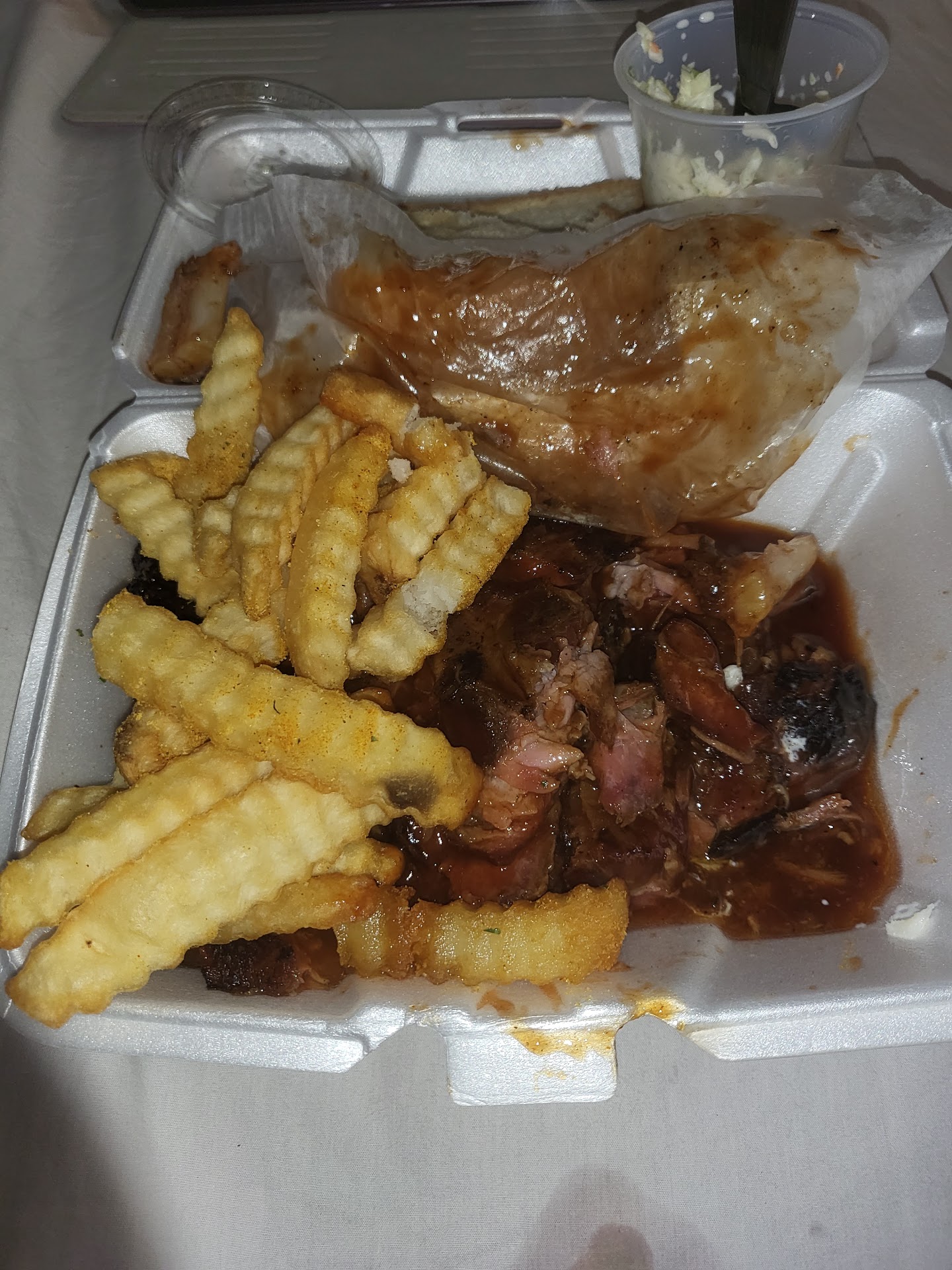 Read moreI recently ordered actually last Friday at opening time I ordered 1 rib tip plate with fries and slaw on ubereats I received it was fresh tender and delicious However, because of my previous order I had my Mom and sister visiting from out of town I bragged on the quality of the food So we ordered again but instead of 1 rib tip plate we ordered 2 The food was inedible the packaging was deplorable unsealed greasy bag containers with sauce and debris on them Then the worst was the actual food Pieces of rib tips were hard burnt tough and half of the amount of food as ordered before My guess is My last order was Friday and food was fresh Today it was obvious we got old leftovers from what didn't sell over the weekend They actually saved and sold for $22+ dollars a plate just to get their money and sadly family couldn't eat the trash they sold us Advice... It's hit ir miss nor consistent and the people preparing it and packaging it could care less